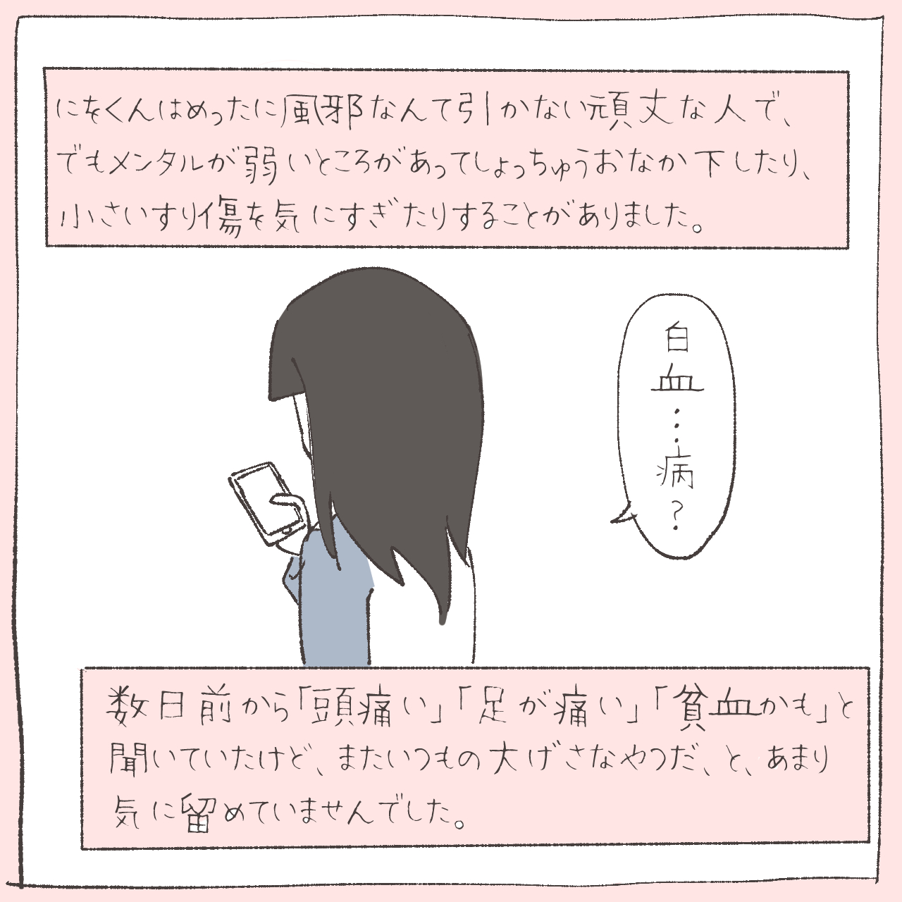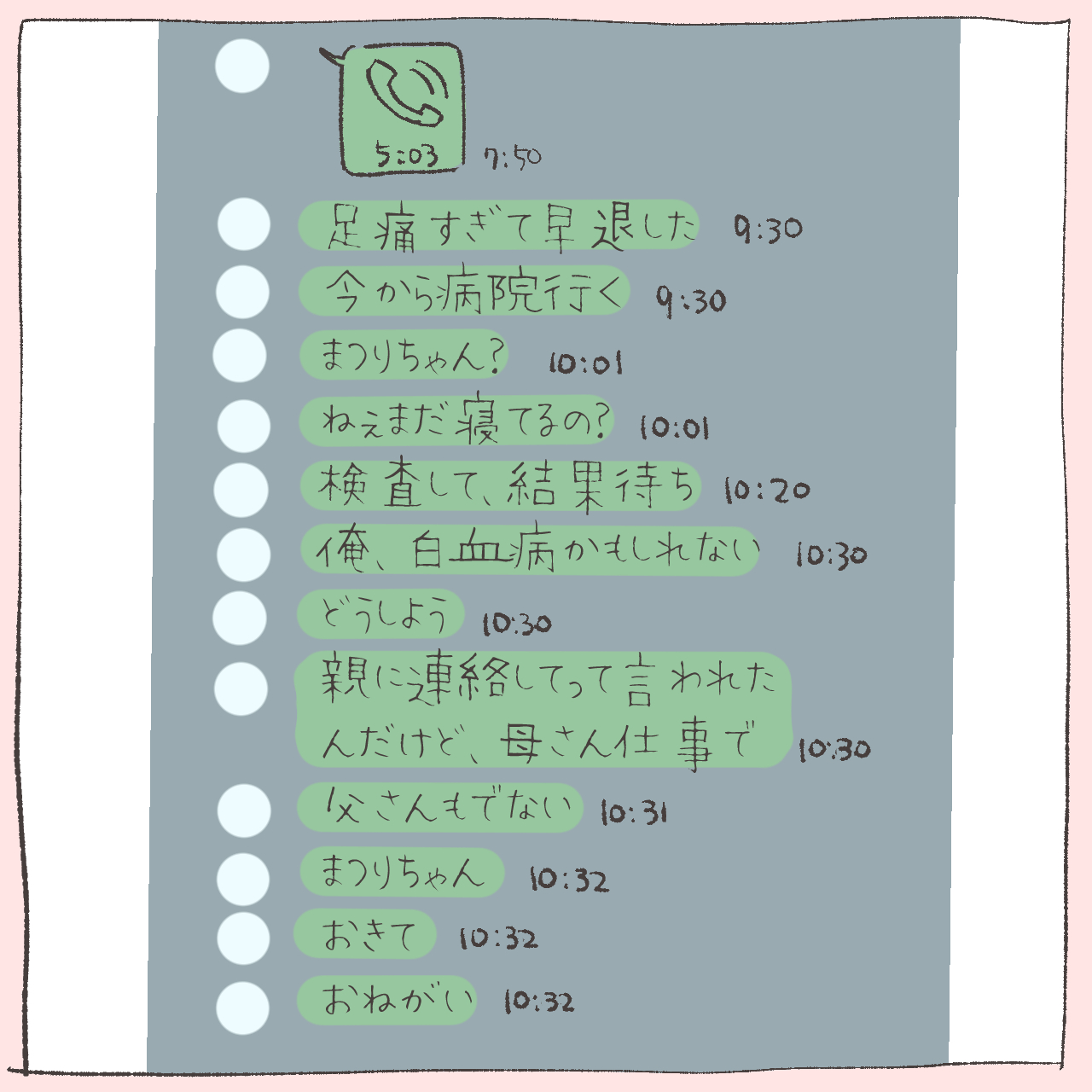 彼氏が白血病だとわかった日 1【まつり漫画】 オリジナル漫画 2022年3月29日 目次 ▼続きはコチラ 彼氏が白血病だとわかった日 2【まつり漫画】 ©まつり ライター まつり 同級生カップルの恋愛漫画を描いています!よろしくお願いします。 Instagram 【@miiiiiiinnn】 Related article / 関連記事 オリジナル漫画 メンヘラ彼氏にサヨナラ【Lovely漫画】 ©みんみ 2022年3月29日 オリジナル漫画 年下イケメン彼氏に翻弄されるオンナの毎日#3【Lovely漫画】 ©みんみ 2022年3月29日 オリジナル漫画 2人暮らしのゆる家事日記~気まぐれ旦那の献立作りの巻き~後編【Lovely漫画】 ©みんみ 2022年3月29日 オリジナル漫画 年下イケメン彼氏に翻弄されるオンナの毎日#1【Lovely漫画】 ©みんみ「初めての○○の話 前編」 2022年3月29日 オリジナル漫画 年下イケメン彼氏に翻弄されるオンナの毎日#2【Lovely漫画】 ©みんみ「初めての○○の話 後編」 2022年3月29日 1 2 オリジナル漫画 よかったらシェアしてね! URLをコピーしました! URLをコピーしました! 【夢占い】彼女に浮気された夢の意味13選|もしかして予知夢?心理状態も解説 | plush 恋愛相談はどこで?相談所・掲示板・アプリでする?男友達にする?