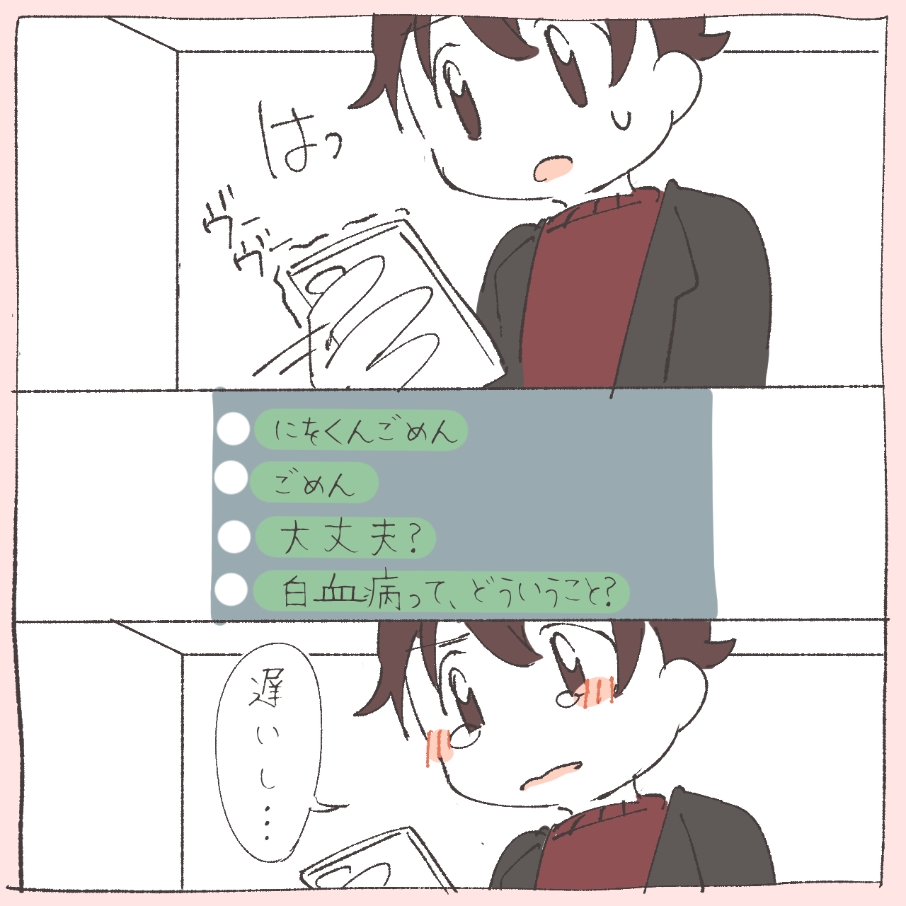 彼氏が白血病だとわかった日 2【まつり漫画】 オリジナル漫画 2022年3月29日 目次 ▼続きはコチラ 彼氏が白血病だとわかった日 3【まつり漫画】 ©まつり ライター まつり 同級生カップルの恋愛漫画を描いています!よろしくお願いします。 Instagram 【@miiiiiiinnn】 Related article / 関連記事 オリジナル漫画 メンヘラ彼氏にサヨナラ【Lovely漫画】 ©みんみ 2022年3月29日 オリジナル漫画 年下イケメン彼氏に翻弄されるオンナの毎日#3【Lovely漫画】 ©みんみ 2022年3月29日 オリジナル漫画 2人暮らしのゆる家事日記~気まぐれ旦那の献立作りの巻き~後編【Lovely漫画】 ©みんみ 2022年3月29日 オリジナル漫画 年下イケメン彼氏に翻弄されるオンナの毎日#1【Lovely漫画】 ©みんみ「初めての○○の話 前編」 2022年3月29日 オリジナル漫画 年下イケメン彼氏に翻弄されるオンナの毎日#2【Lovely漫画】 ©みんみ「初めての○○の話 後編」 2022年3月29日 1 2 オリジナル漫画 よかったらシェアしてね! URLをコピーしました! URLをコピーしました! 【夢占い】彼女に浮気された夢の意味13選|もしかして予知夢?心理状態も解説 | plush 恋愛相談はどこで?相談所・掲示板・アプリでする?男友達にする?