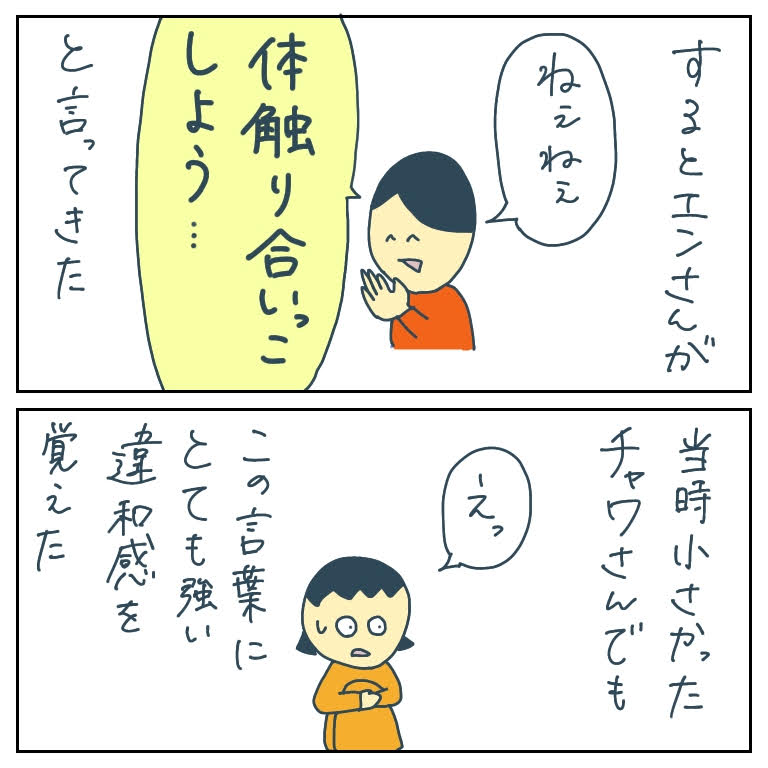 小学生に信じられない要求をされたはなし2※閲覧注意※【稲漫画】 オリジナル漫画 2022年3月29日 ▼前回のお話はこちら 小学生に信じられない要求をされたはなし1【稲漫画】 小学3年生に起きた子供同士の性問題©稲 ▼次を読む 小学生に信じられない要求をされたはなし3【稲漫画】 小学3年生に起きた子供同士の性問題©稲 ▼こちらもおすすめ オンラインで始まるリアルな恋~アニオタ美和(27)編~【Lovely創作漫画】 「クリスマスまであと何日…?今年もひとりかあ…」彼氏いない歴=年齢のアニメオタク美和(27)は、ある日たまたま『オンラインオフ会』とやらを見つけて参加。…そしてクリスマスまでに奇跡が起こる!? オンラインで始まるリアルな恋~バリキャリかおり(28)編~【Lovely創作漫画】 婚活中のバリキャリかおり(28)は、オンライン婚活にハマっていた。ある日、画面の向こうにイケメンが!「話も弾むしいい感じ~♡」と思っていたら、予期せぬ形でお笑い好きがばれてしまい…吉と出るか凶と出るか?! ライター 稲 エッセイ漫画を描くサラリーウーマン!Instagram【@inasan_mainichi】 目次Related article / 関連記事 稲 近所のお爺さんが怖かったはなし4【稲漫画】 4歳で経験した恐怖の話!©稲 2022年3月29日 稲 近所のお爺さんが怖かったはなし5【稲漫画】 4歳で経験した恐怖の話!©稲 2022年3月29日 稲 近所のお爺さんが怖かったはなし6【稲漫画】 4歳で経験した恐怖の話!©稲 2022年3月29日 稲 近所のお爺さんが怖かったはなし3【稲漫画】 4歳で経験した恐怖の話!©稲 2022年3月29日 稲 近所のお爺さんが怖かったはなし2【稲漫画】 4歳で経験した恐怖の話!©稲 2022年3月29日 稲 近所のお爺さんが怖かったはなし1【稲漫画】 4歳で経験した恐怖の話!©稲 2022年3月29日 稲 おかしな引っ越し挨拶のはなし4(完)【稲漫画】 一人暮らしの学生に起きた恐怖体験!©稲 2022年3月29日 稲 おかしな引っ越し挨拶のはなし3【稲漫画】 一人暮らしの学生に起きた恐怖体験!©稲 2022年3月29日 稲 おかしな引っ越し挨拶のはなし2【稲漫画】 一人暮らしの学生に起きた恐怖体験!©稲 2022年3月29日 稲 おかしな引っ越し挨拶のはなし1【稲漫画】 一人暮らしの学生に起きた恐怖体験!©稲 2022年3月29日 稲 警察を名乗る人から電話があったはなし4(完)【稲漫画】 キャバ嬢の恐怖体験!©稲 2022年3月29日 稲 警察を名乗る人から電話があったはなし3【稲漫画】 キャバ嬢の恐怖体験!©稲 2022年3月29日 稲 警察を名乗る人から電話があったはなし2【稲漫画】 キャバ嬢の恐怖体験!©稲 2022年3月29日 稲 警察を名乗る人から電話があったはなし1【稲漫画】 キャバ嬢の恐怖体験!©稲 2022年3月29日 稲 カットモデル不審者のはなし5(完)【稲漫画】 試験でクタクタだった高校生の恐怖体験!©稲 2022年3月29日 稲 カットモデル不審者のはなし4【稲漫画】 試験でクタクタだった高校生の恐怖体験!©稲 2022年3月29日 稲 カットモデル不審者のはなし3【稲漫画】 試験でクタクタだった高校生の恐怖体験!©稲 2022年3月29日 稲 カットモデル不審者のはなし2【稲漫画】 試験でクタクタだった高校生の恐怖体験!©稲 2022年3月29日 稲 カットモデル不審者のはなし1【稲漫画】 試験でクタクタだった高校生の恐怖体験!©稲 2022年3月29日 稲 ショッピングモールの覆面調査不審者のはなし5(完)【稲漫画】 やや謎が残る不審者の恐怖体験!©稲 2022年3月29日 オリジナル漫画 よかったらシェアしてね! URLをコピーしました! URLをコピーしました! 【夢占い】彼女に浮気された夢の意味13選|もしかして予知夢?心理状態も解説 | plush 恋愛相談はどこで?相談所・掲示板・アプリでする?男友達にする?