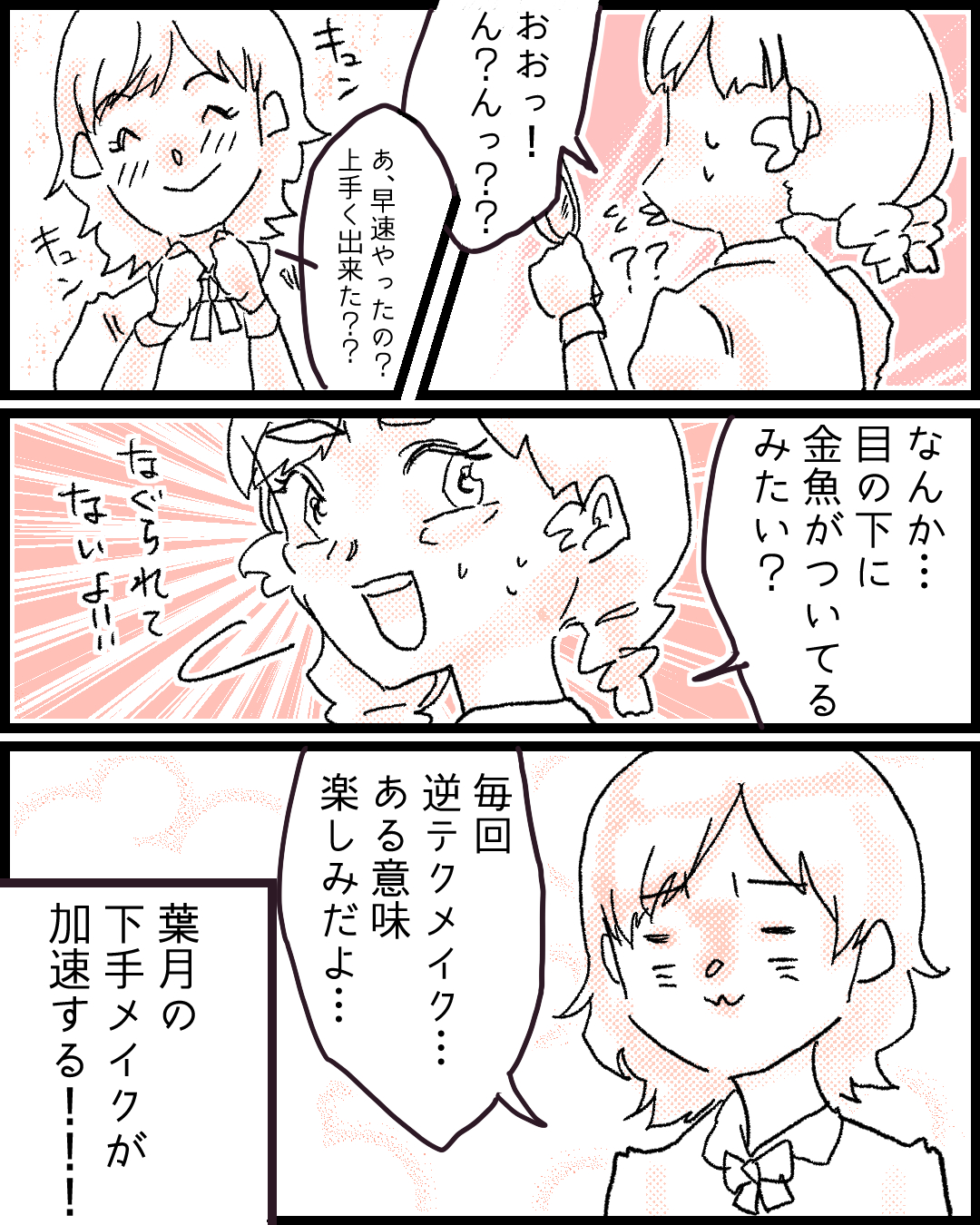 告白に失敗し、幼馴染の美心に可愛くなるコツを伝授してもらっている葉月(16)。パーソナルカラー、二重メイク、涙袋メイクを習得して練習あるのみ!な日々。告白のリベンジに向けて復習だ!©ゆに