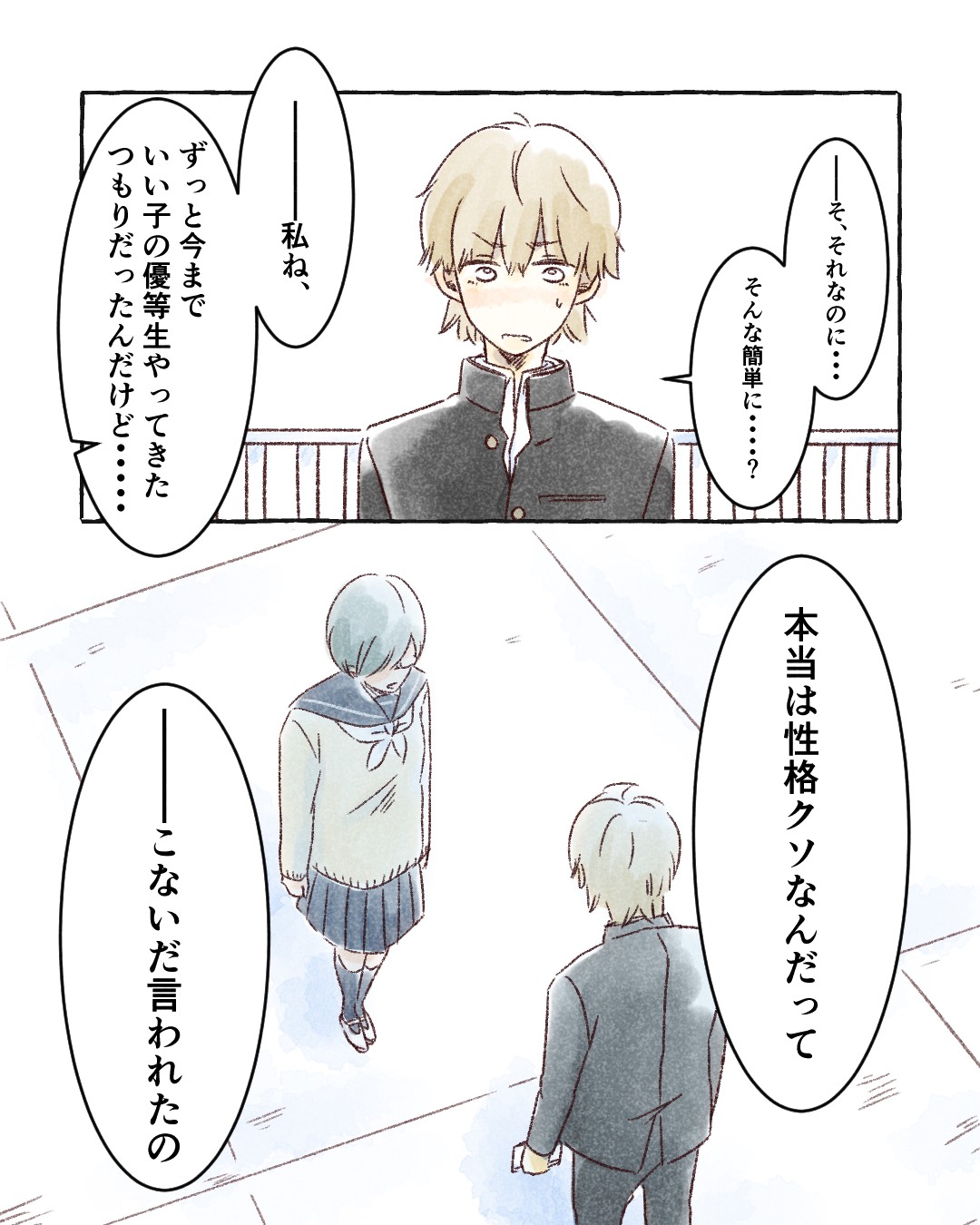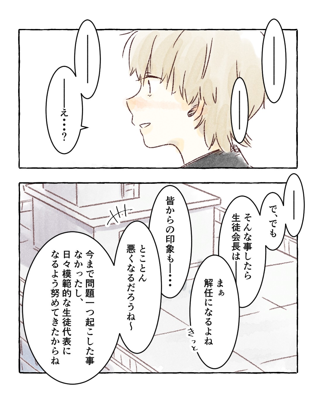 『世の中はクソだ』-見た目と噂で周りから恐れられている宇野は、才色兼備の生徒会長・鈴原の秘密を知ることになる…。※このストーリーはフィクションです。©真白ばに