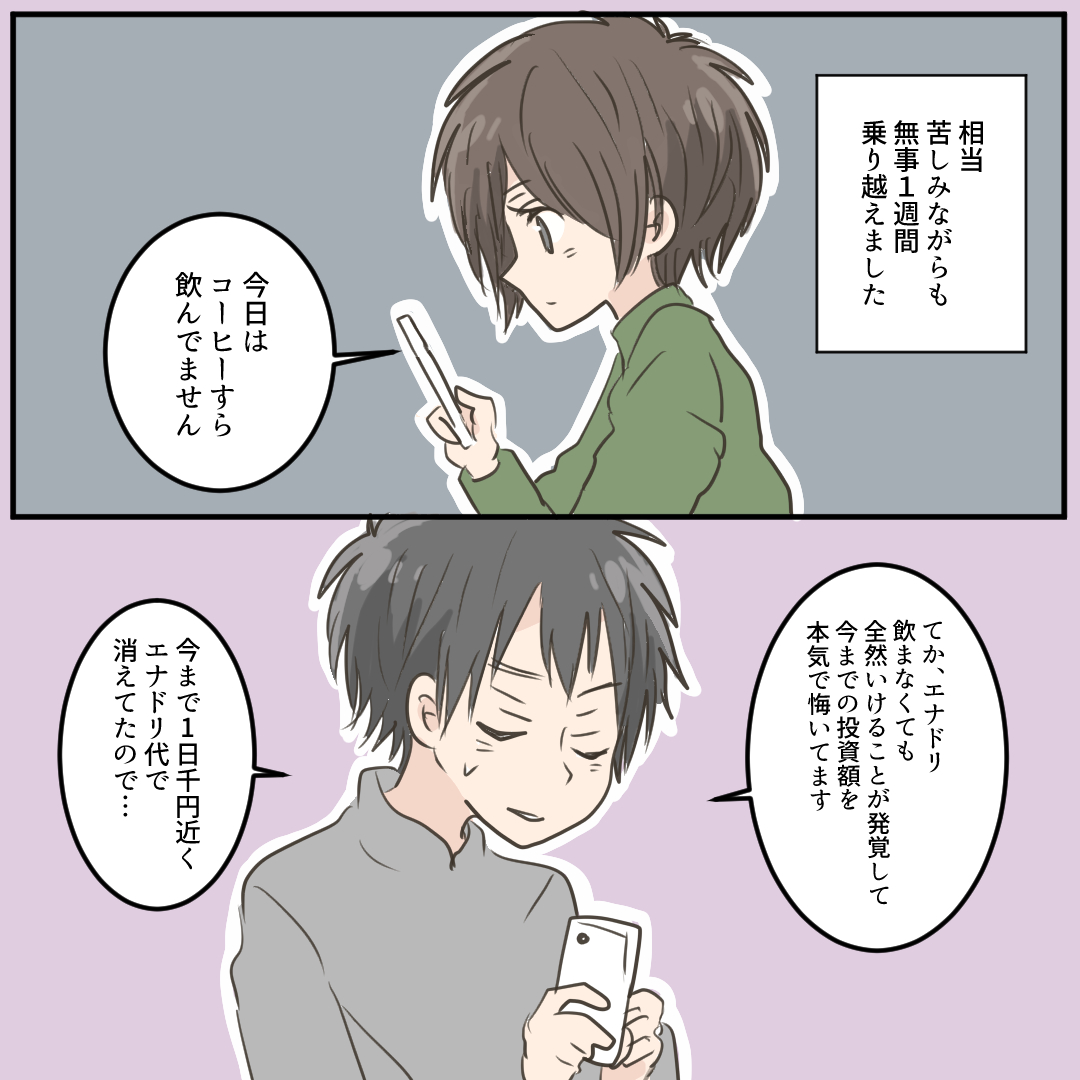 タバコをやめた彼氏がエナジードリンク依存症になったはなし7【倉間漫画】 オリジナル漫画 2022年3月29日 目次 ▼次を読む 【最新話】タバコをやめた彼氏がエナジードリンク依存症になったはなし8(終)【倉間漫画】 ほぼ毎日1箱吸っていた南(彼氏)さんが禁煙と向き合うお話続編!©倉間 ライター 倉間 旅行と酒を愛する会社員です!Instagram【@kurama__23】 Related article / 関連記事 オリジナル漫画 顔に出にくいカップルの話【Lovely漫画】 azusaさんオリジナル、読み切り短編漫画の連載スタート!(不定期更新) 2022年3月29日 オリジナル漫画 里中さんと山内くんの両片想い【Lovely漫画】 告白しようと思うもいつも失敗してしまう里中さんと、勇気を出せずにいる山内くんの、初々しい短編連載スタート!©azusa 2022年3月29日 オリジナル漫画 結局、恋愛にも就職にもスナックでのバイトが一番役に立ったという話1【Lovely漫画】 女度アップや仕事につかえる小ネタなどを綴る新連載スタート!©ホシノモナカ 2022年3月29日 オリジナル漫画 2人暮らしのゆる家事日記~再生栽培のススメ~【連載】【Lovely漫画】 ©みんみ 2022年3月29日 オリジナル漫画 年下イケメン彼氏に翻弄されるオンナの毎日#4【Lovely漫画】 ©みんみ 2022年3月29日 恋愛漫画 お付き合い編 2【magari漫画】 みぎと雪さんのカップルエッセイ♡ ©magari 2022年10月5日 恋愛漫画 お付き合い編 3【magari漫画】 みぎと雪さんのカップルエッセイ♡ ©magari 2022年10月5日 恋愛漫画 お付き合い編 4【magari漫画】 みぎと雪さんのカップルエッセイ♡ ©magari 2022年10月5日 恋愛漫画 お付き合い編 5【magari漫画】 みぎと雪さんのカップルエッセイ♡ ©magari 2022年10月5日 恋愛漫画 お付き合い編 6【magari漫画】 みぎと雪さんのカップルエッセイ♡ ©magari 2022年10月5日 恋愛漫画 お付き合い編 7【magari漫画】 みぎと雪さんのカップルエッセイ♡ ©magari 2022年10月5日 連載 20歳で妊娠した話1【azusa】 ~わたしと夫がぷいちゃんに出会うまで~©azusa 2022年3月29日 連載 20歳で妊娠した話2【azusa】 ~わたしと夫がぷいちゃんに出会うまで~©azusa 2022年3月29日 連載 20歳で妊娠した話3【azusa】 ~わたしと夫がぷいちゃんに出会うまで~©azusa 2022年3月29日 連載 20歳で妊娠した話4【azusa】 ~わたしと夫がぷいちゃんに出会うまで~©azusa 2022年3月29日 連載 20歳で妊娠した話5【azusa】 ~わたしと夫がぷいちゃんに出会うまで~©azusa 2022年3月29日 連載 20歳で妊娠した話6【azusa】 ~わたしと夫がぷいちゃんに出会うまで~©azusa 2022年3月29日 連載 20歳で妊娠した話7【azusa】 ~わたしと夫がぷいちゃんに出会うまで~©azusa 2022年3月29日 連載 20歳で妊娠した話8【azusa】 ~わたしと夫がぷいちゃんに出会うまで~©azusa 2022年3月29日 連載 20歳で妊娠した話9【azusa】 ~わたしと夫がぷいちゃんに出会うまで~©azusa 2022年3月29日 1 2 オリジナル漫画 よかったらシェアしてね! URLをコピーしました! URLをコピーしました! 【夢占い】彼女に浮気された夢の意味13選|もしかして予知夢?心理状態も解説 | plush 恋愛相談はどこで?相談所・掲示板・アプリでする?男友達にする?