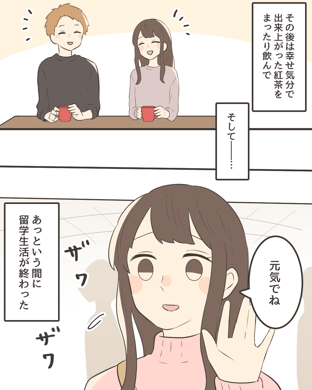 語学留学で、イギリス人と。【Lovely漫画】 オリジナル漫画 2025年2月21日 目次 サクライさんの作品をもっと読む! サクライさんの作品一覧【Lovely漫画】 サクライさんの人気作をおまとめしています! こちらもおすすめ! 私にとっての王子様を見つけた【Lovely漫画】 バイト先の社員さんとはよく電話をする間柄。からかわれたりもするし、なんだか調子が狂う…。いつも通り電話をしていると、道で他人に声を掛けられた。駅の場所を聞かれたけど、これは…ナンパ…?!©なぁ/エピソード:める ひとつ屋根の下で恋が始まった【Lovely漫画】 同じアパートに住むサークルの先輩に片思い中♡勢いで連絡するも、何だか塩対応…。しかし翌日、先輩から思いもしなかった連絡が…!©ナナ/エピソード:春が好き 出会って最初のサプライズ【Lovely漫画】 SNSで出会った彼と意気投合。でも、突然「好きな人ができた」と言われ…。©倖/エピソード:TomiTomi 既視感のある女性7「スカートが下着に巻き込まれていることに気付かない女性」【わたし氏漫画】 ©わたし氏 ライター Lovely編集部 編集部レポや最新情報など皆さんの「知りたい」をお届け!よろしくお願いします♡ Related article / 関連記事 オリジナル漫画 メンヘラ彼氏にサヨナラ【Lovely漫画】 ©みんみ 2022年3月29日 オリジナル漫画 年下イケメン彼氏に翻弄されるオンナの毎日#3【Lovely漫画】 ©みんみ 2022年3月29日 オリジナル漫画 2人暮らしのゆる家事日記~気まぐれ旦那の献立作りの巻き~後編【Lovely漫画】 ©みんみ 2022年3月29日 オリジナル漫画 年下イケメン彼氏に翻弄されるオンナの毎日#1【Lovely漫画】 ©みんみ「初めての○○の話 前編」 2022年3月29日 オリジナル漫画 年下イケメン彼氏に翻弄されるオンナの毎日#2【Lovely漫画】 ©みんみ「初めての○○の話 後編」 2022年3月29日 1 2 3 オリジナル漫画 よかったらシェアしてね! URLをコピーしました! URLをコピーしました! なに考えてるの?【Lovely漫画】 私の大きな第一歩【Lovely漫画】