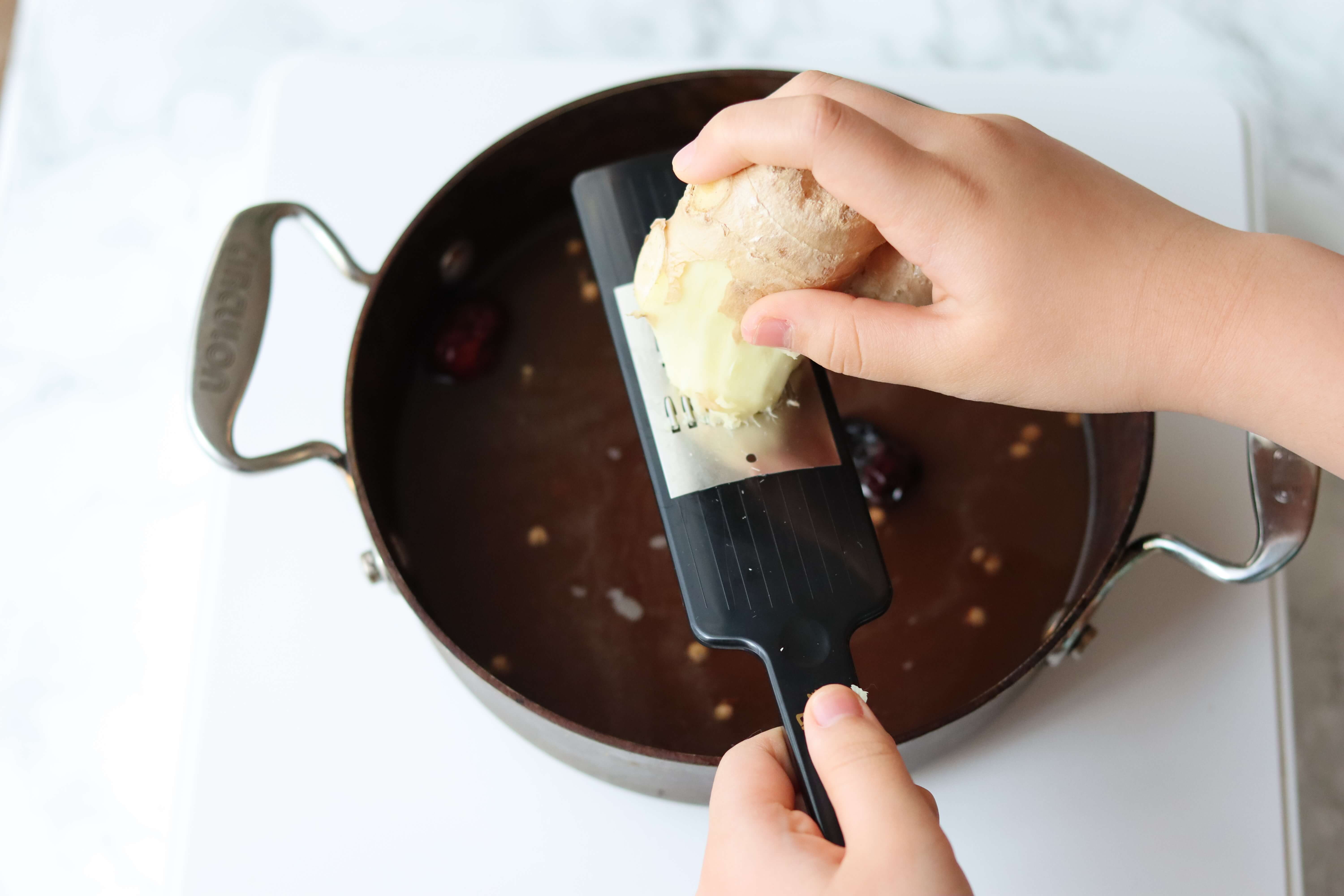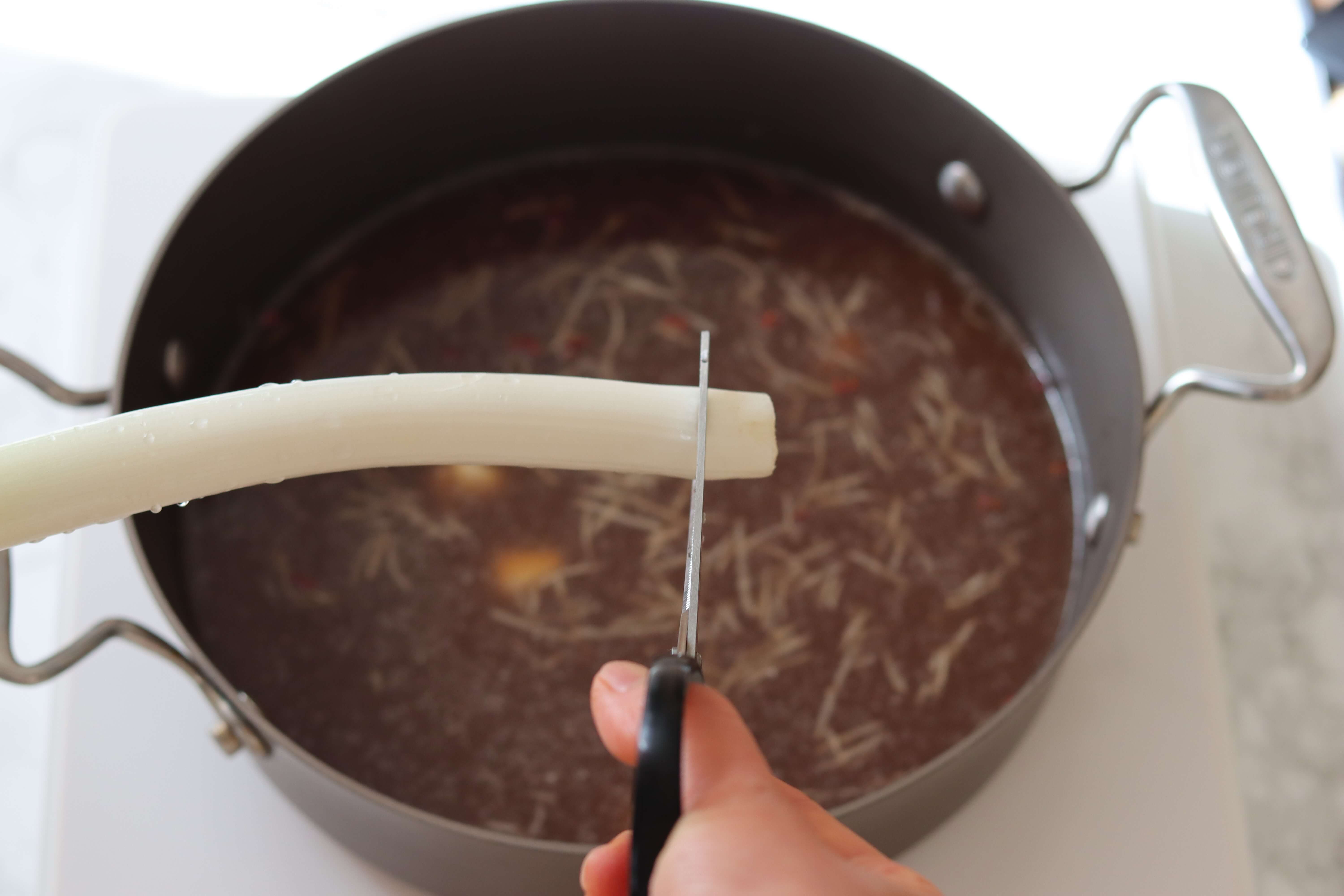- キッチン鋏や千切り器を使うことで簡単&時短に。鍋のうえで食材を切れば洗い物も少なくて済みますよ。しょうがは必要量より大きめの欠片を用意し、使う分だけ皮をこそげて千切り器にかけると使いやすいです。〆には中華麺がピッタリ!