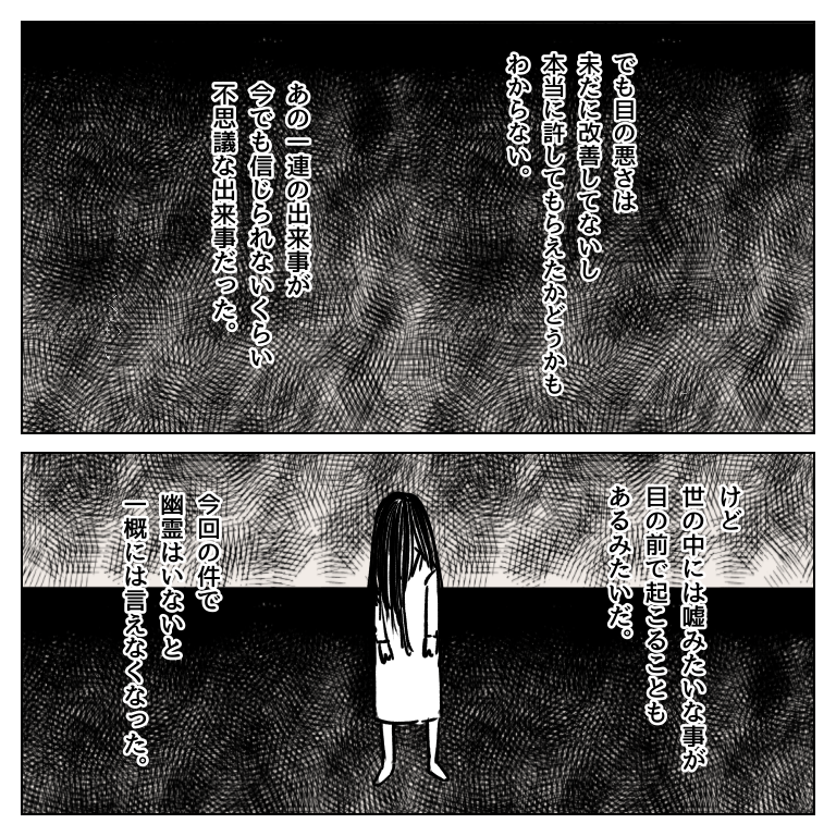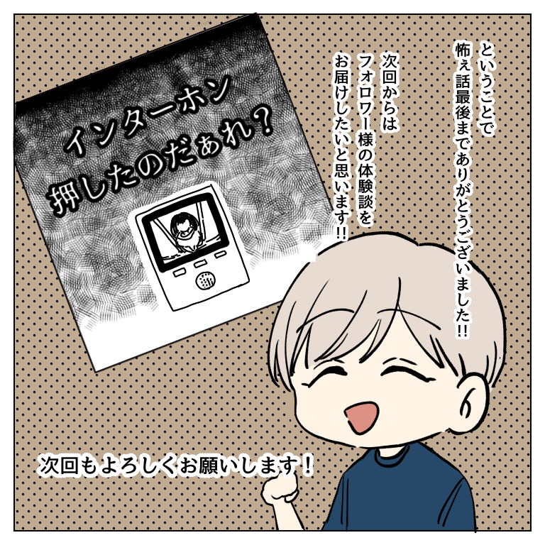 本当に体験した怖ぇ話 7(終)【magari漫画】 オリジナル漫画 2022年3月29日 目次 次回連載はフォロワーさん体験談!こちらから読めます インターホン押したのだぁれ? 1【magari漫画】 フォロワーさんが実際に体験したおはなし ©magari ▼連載を最初から読む 本当に体験した怖ぇ話 1【magari漫画】 心霊系って怖いけど、心のどこかで「幽霊なんていないでしょー(笑)」と思っていた私が体験した話です。©magari ▼magariさんの連載一覧 SNSで大人気の漫画家♡ エッセイや創作ストーリーなど、大人気更新中!Instagram【mgmgr.start】 ▼こちらのLovely漫画もオススメ! 彼氏が白血病だとわかった日 1【まつり漫画】 ©まつり ママ活男子の恋 1【みわ柴ちゃん漫画】 ママ活で出会った1人の女性に心を奪われていく、男子大学生のラブストーリー。(※このストーリーはフィクションです。) ©みわ柴ちゃん 既視感のある女性1「何らかのボスの側に居るだけの無駄に色気のある謎の女性」【わたし氏漫画】 ©わたし氏 ライター magari 圧倒的イラスト力とストーリーでSNSでも大人気の漫画家! Instagram【@mgmgr.start】 Related article / 関連記事 オリジナル漫画 メンヘラ彼氏にサヨナラ【Lovely漫画】 ©みんみ 2022年3月29日 オリジナル漫画 年下イケメン彼氏に翻弄されるオンナの毎日#3【Lovely漫画】 ©みんみ 2022年3月29日 オリジナル漫画 2人暮らしのゆる家事日記~気まぐれ旦那の献立作りの巻き~後編【Lovely漫画】 ©みんみ 2022年3月29日 オリジナル漫画 年下イケメン彼氏に翻弄されるオンナの毎日#1【Lovely漫画】 ©みんみ「初めての○○の話 前編」 2022年3月29日 オリジナル漫画 年下イケメン彼氏に翻弄されるオンナの毎日#2【Lovely漫画】 ©みんみ「初めての○○の話 後編」 2022年3月29日 1 2 オリジナル漫画 よかったらシェアしてね! URLをコピーしました! URLをコピーしました! 【夢占い】彼女に浮気された夢の意味13選|もしかして予知夢?心理状態も解説 | plush 恋愛相談はどこで?相談所・掲示板・アプリでする?男友達にする?