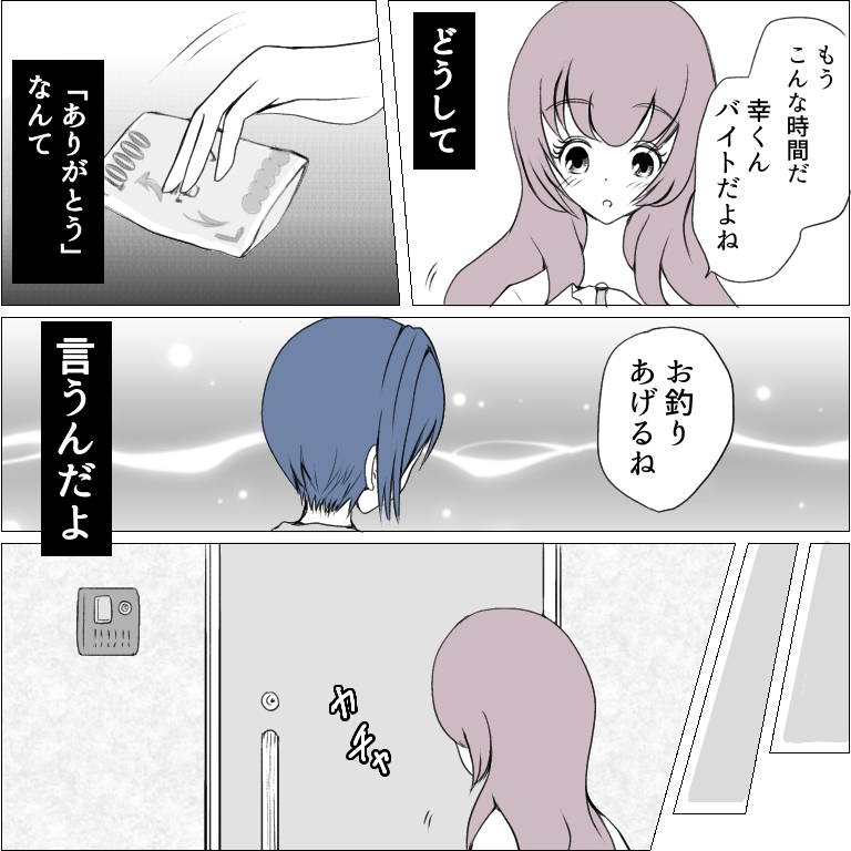 ママ活男子の恋 12【みわ柴ちゃん漫画】 オリジナル漫画 2022年3月29日 目次 ▼続きはコチラ ママ活男子の恋 13【みわ柴ちゃん漫画】 ママ活で出会った1人の女性に心を奪われていく、男子大学生のラブストーリー。(※このストーリーはフィクションです。) ©みわ柴ちゃん ▼前回のお話はコチラ ママ活男子の恋 11【みわ柴ちゃん漫画】 ママ活で出会った1人の女性に心を奪われていく、男子大学生のラブストーリー。(※このストーリーはフィクションです。) ©みわ柴ちゃん ▼連載を最初から読む ママ活男子の恋 1【みわ柴ちゃん漫画】 ママ活で出会った1人の女性に心を奪われていく、男子大学生のラブストーリー。(※このストーリーはフィクションです。) ©みわ柴ちゃん ▼みわ柴ちゃんの連載一覧 ダークな恋愛を描く創作漫画 ダークな恋愛を描く創作漫画©みわ柴ちゃん ▼こちらのLovely漫画もオススメ! 本当にいた怖い元カノ 1【magari漫画】 みぎと雪さんのカップルエッセイ♡ ©magari 彼氏が白血病だとわかった日 1【まつり漫画】 ©まつり ライター みわ柴ちゃん ダークな恋愛を描いています。楽しんで頂けるよう精一杯頑張ります!Instagram【@miwashibachan】 Related article / 関連記事 オリジナル漫画 メンヘラ彼氏にサヨナラ【Lovely漫画】 ©みんみ 2022年3月29日 オリジナル漫画 年下イケメン彼氏に翻弄されるオンナの毎日#3【Lovely漫画】 ©みんみ 2022年3月29日 オリジナル漫画 2人暮らしのゆる家事日記~気まぐれ旦那の献立作りの巻き~後編【Lovely漫画】 ©みんみ 2022年3月29日 オリジナル漫画 年下イケメン彼氏に翻弄されるオンナの毎日#1【Lovely漫画】 ©みんみ「初めての○○の話 前編」 2022年3月29日 オリジナル漫画 年下イケメン彼氏に翻弄されるオンナの毎日#2【Lovely漫画】 ©みんみ「初めての○○の話 後編」 2022年3月29日 1 2 オリジナル漫画 よかったらシェアしてね! URLをコピーしました! URLをコピーしました! 【夢占い】彼女に浮気された夢の意味13選|もしかして予知夢?心理状態も解説 | plush 恋愛相談はどこで?相談所・掲示板・アプリでする?男友達にする?