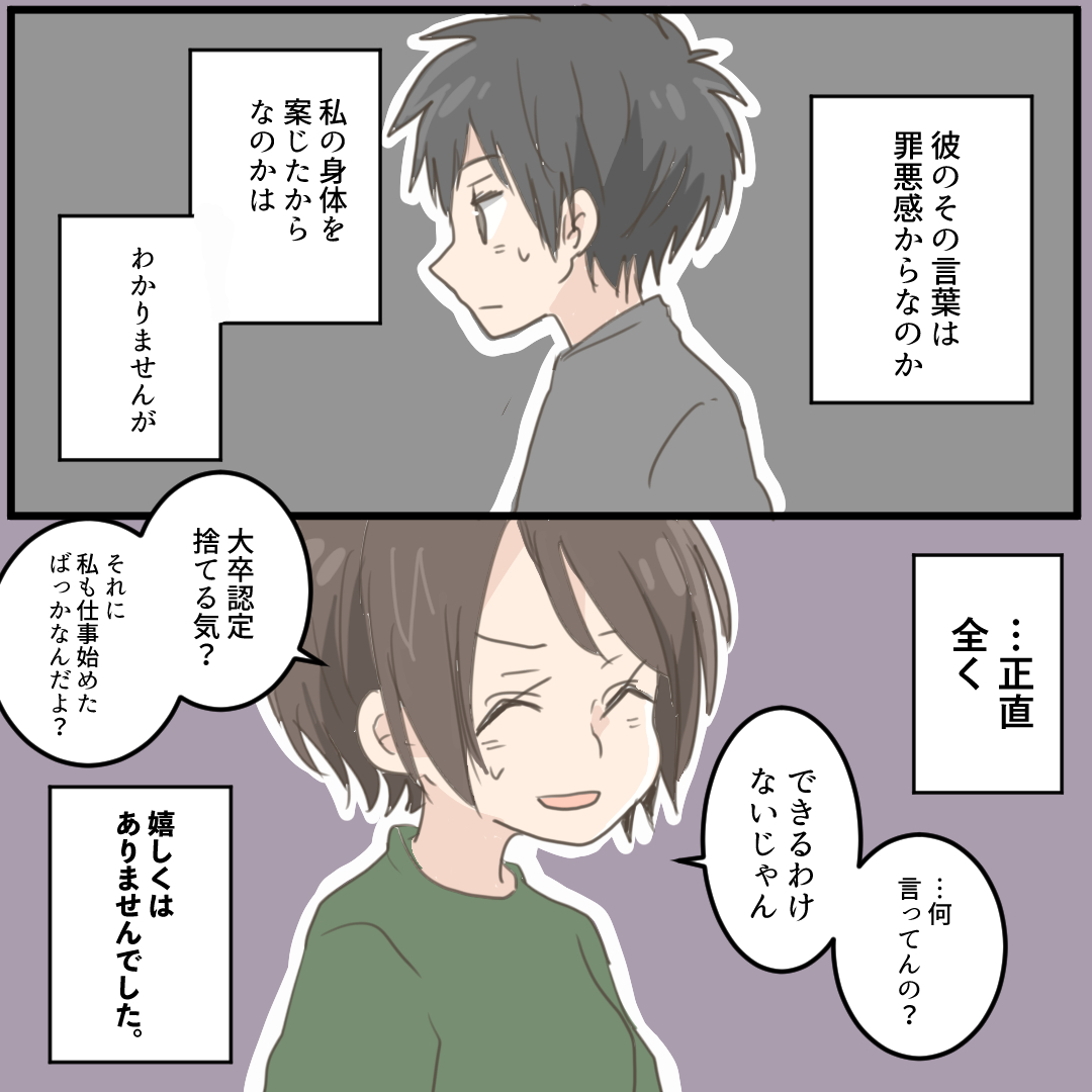 アフターピルを飲んだ話3【倉間漫画】 オリジナル漫画 2022年3月29日 目次 次回更新をお楽しみに…! 自宅にいながらピルを処方!最短24時間以内にお手元に。 ▼次を読む アフターピルを飲んだ話4【倉間漫画】 当時大学生の彼氏と新社会人の彼女が人生で一番悩んだお話©倉間 ▼倉間さんの連載一覧はこちら 旅行とお酒を愛する会社員のエッセイ漫画 旅行とお酒を愛する会社員のエッセイ漫画©倉間 こちらの連載もおすすめ! 恋する季節に ー春ー 1【beth(ベス)漫画】 SNSで大人気beth(ベス)さんが送る胸キュン間違いなしの創作ストーリー!呼春ちゃん編♡ ©beth(ベス) 同級生カップルの恋愛漫画 同級生カップルの恋愛漫画を描いています!©まつり ライター 倉間 旅行と酒を愛する会社員です!Instagram【@kurama__23】 Related article / 関連記事 オリジナル漫画 顔に出にくいカップルの話【Lovely漫画】 azusaさんオリジナル、読み切り短編漫画の連載スタート!(不定期更新) 2022年3月29日 オリジナル漫画 里中さんと山内くんの両片想い【Lovely漫画】 告白しようと思うもいつも失敗してしまう里中さんと、勇気を出せずにいる山内くんの、初々しい短編連載スタート!©azusa 2022年3月29日 オリジナル漫画 結局、恋愛にも就職にもスナックでのバイトが一番役に立ったという話1【Lovely漫画】 女度アップや仕事につかえる小ネタなどを綴る新連載スタート!©ホシノモナカ 2022年3月29日 オリジナル漫画 2人暮らしのゆる家事日記~再生栽培のススメ~【連載】【Lovely漫画】 ©みんみ 2022年3月29日 オリジナル漫画 年下イケメン彼氏に翻弄されるオンナの毎日#4【Lovely漫画】 ©みんみ 2022年3月29日 恋愛漫画 お付き合い編 2【magari漫画】 みぎと雪さんのカップルエッセイ♡ ©magari 2022年10月5日 恋愛漫画 お付き合い編 3【magari漫画】 みぎと雪さんのカップルエッセイ♡ ©magari 2022年10月5日 恋愛漫画 お付き合い編 4【magari漫画】 みぎと雪さんのカップルエッセイ♡ ©magari 2022年10月5日 恋愛漫画 お付き合い編 5【magari漫画】 みぎと雪さんのカップルエッセイ♡ ©magari 2022年10月5日 恋愛漫画 お付き合い編 6【magari漫画】 みぎと雪さんのカップルエッセイ♡ ©magari 2022年10月5日 恋愛漫画 お付き合い編 7【magari漫画】 みぎと雪さんのカップルエッセイ♡ ©magari 2022年10月5日 連載 20歳で妊娠した話1【azusa】 ~わたしと夫がぷいちゃんに出会うまで~©azusa 2022年3月29日 連載 20歳で妊娠した話2【azusa】 ~わたしと夫がぷいちゃんに出会うまで~©azusa 2022年3月29日 連載 20歳で妊娠した話3【azusa】 ~わたしと夫がぷいちゃんに出会うまで~©azusa 2022年3月29日 連載 20歳で妊娠した話4【azusa】 ~わたしと夫がぷいちゃんに出会うまで~©azusa 2022年3月29日 連載 20歳で妊娠した話5【azusa】 ~わたしと夫がぷいちゃんに出会うまで~©azusa 2022年3月29日 連載 20歳で妊娠した話6【azusa】 ~わたしと夫がぷいちゃんに出会うまで~©azusa 2022年3月29日 連載 20歳で妊娠した話7【azusa】 ~わたしと夫がぷいちゃんに出会うまで~©azusa 2022年3月29日 連載 20歳で妊娠した話8【azusa】 ~わたしと夫がぷいちゃんに出会うまで~©azusa 2022年3月29日 連載 20歳で妊娠した話9【azusa】 ~わたしと夫がぷいちゃんに出会うまで~©azusa 2022年3月29日 1 2 オリジナル漫画 よかったらシェアしてね! URLをコピーしました! URLをコピーしました! 【夢占い】彼女に浮気された夢の意味13選|もしかして予知夢?心理状態も解説 | plush 恋愛相談はどこで?相談所・掲示板・アプリでする?男友達にする?