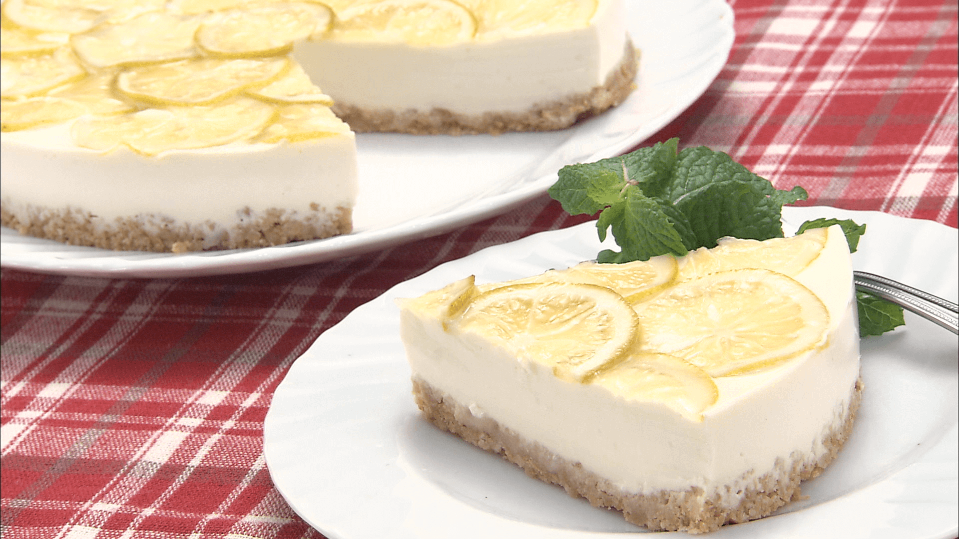- ボウルに水切りした豆乳グルトを入れ、4を少しずつ加えながら混ぜ合わせる。2に流し入れ、3のレモンを全体にのせ、冷蔵庫で2時間ほど冷やす。