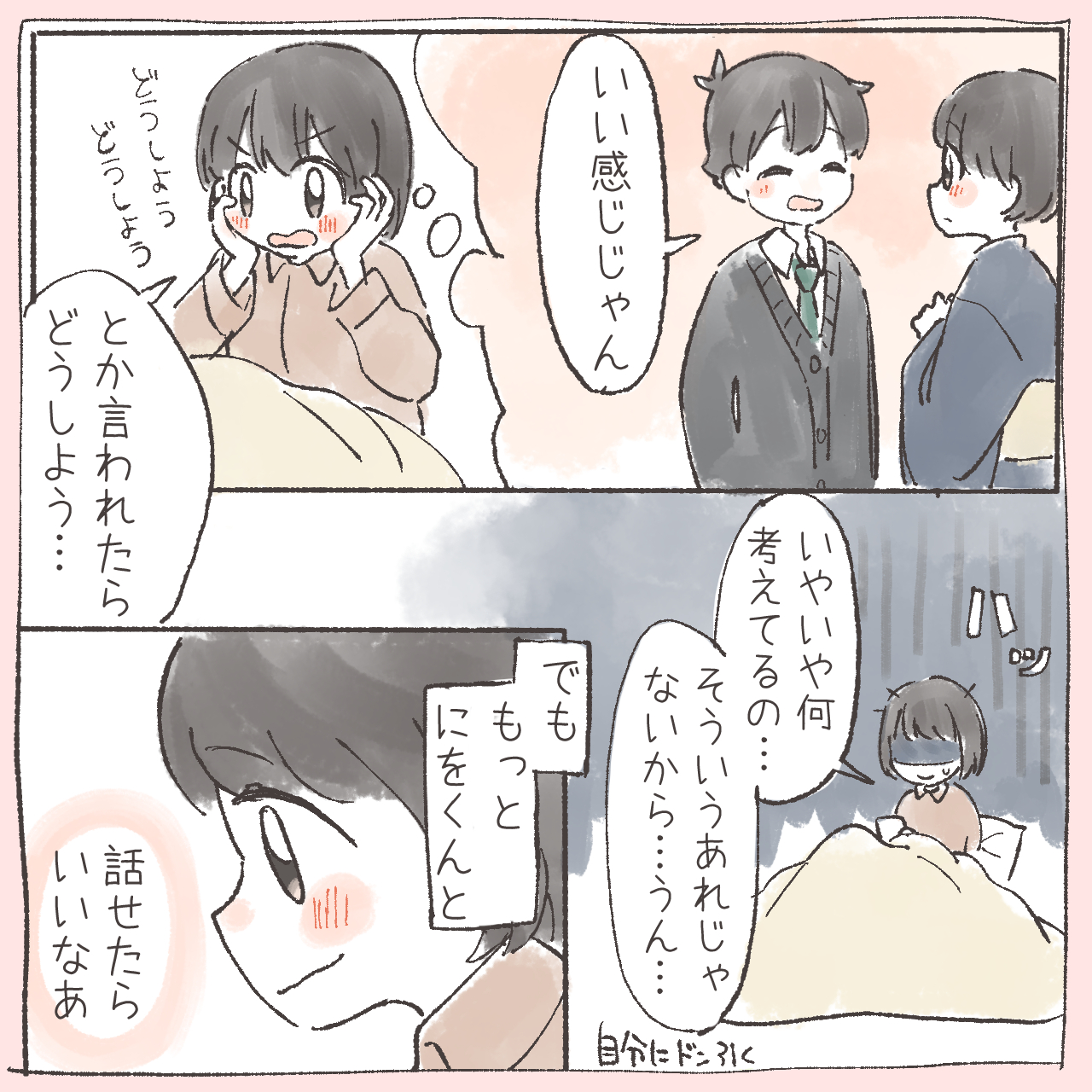 ふたりのなれそめ 6【まつり漫画】 オリジナル漫画 2022年3月29日 目次 ▼続きはコチラ ふたりのなれそめ 7【まつり漫画】 まつりとにをくんの、出会いのおはなし ©まつり ▼連載を最初から読む ふたりのなれそめ 0【まつり漫画】 まつりとにをくんの、出会いのおはなし ©まつり ▼まつりさんの連載一覧 同級生カップルの恋愛漫画 同級生カップルの恋愛漫画を描いています!©まつり ▼こちらのLovely漫画もオススメ! 恋する季節に ー春ー 1【beth(ベス)漫画】 SNSで大人気beth(ベス)さんが送る胸キュン間違いなしの創作ストーリー!呼春ちゃん編♡ ©beth(ベス) 桜振る日に 0 -プロローグ-【magari漫画】 SNSでも大人気!みぎまがりさんの新連載スタート♡ ©magari ライター まつり 同級生カップルの恋愛漫画を描いています!よろしくお願いします。 Instagram 【@miiiiiiinnn】 Related article / 関連記事 オリジナル漫画 メンヘラ彼氏にサヨナラ【Lovely漫画】 ©みんみ 2022年3月29日 オリジナル漫画 年下イケメン彼氏に翻弄されるオンナの毎日#3【Lovely漫画】 ©みんみ 2022年3月29日 オリジナル漫画 2人暮らしのゆる家事日記~気まぐれ旦那の献立作りの巻き~後編【Lovely漫画】 ©みんみ 2022年3月29日 オリジナル漫画 年下イケメン彼氏に翻弄されるオンナの毎日#1【Lovely漫画】 ©みんみ「初めての○○の話 前編」 2022年3月29日 オリジナル漫画 年下イケメン彼氏に翻弄されるオンナの毎日#2【Lovely漫画】 ©みんみ「初めての○○の話 後編」 2022年3月29日 1 2 オリジナル漫画 よかったらシェアしてね! URLをコピーしました! URLをコピーしました! 【夢占い】彼女に浮気された夢の意味13選|もしかして予知夢?心理状態も解説 | plush 恋愛相談はどこで?相談所・掲示板・アプリでする?男友達にする?