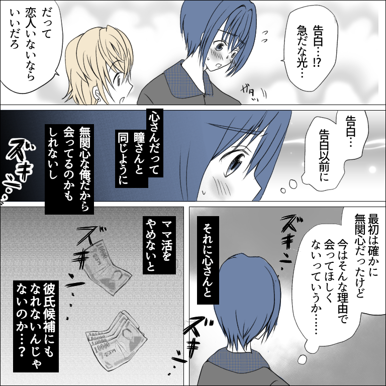ママ活男子の恋 16【みわ柴ちゃん漫画】 オリジナル漫画 2022年3月29日 目次 ▼続きはコチラ ママ活男子の恋 17【みわ柴ちゃん漫画】 ママ活で出会った1人の女性に心を奪われていく、男子大学生のラブストーリー。(※このストーリーはフィクションです。) ©みわ柴ちゃん ▼前回のお話はコチラ ママ活男子の恋 15【みわ柴ちゃん漫画】 ママ活で出会った1人の女性に心を奪われていく、男子大学生のラブストーリー。(※このストーリーはフィクションです。) ©みわ柴ちゃん ▼みわ柴ちゃんの連載一覧 ダークな恋愛を描く創作漫画 ダークな恋愛を描く創作漫画©みわ柴ちゃん ▼こちらのLovely漫画もオススメ! 彼氏が白血病だとわかった日 1【まつり漫画】 ©まつり 本当に体験した怖ぇ話 1【magari漫画】 心霊系って怖いけど、心のどこかで「幽霊なんていないでしょー(笑)」と思っていた私が体験した話です。©magari 恋する季節に ー春ー 1【beth(ベス)漫画】 SNSで大人気beth(ベス)さんが送る胸キュン間違いなしの創作ストーリー!呼春ちゃん編♡ ©beth(ベス) かままの(第一子)妊娠記録 1【かまま漫画】 おなかに娘がやってきたときのはなし ©かまま ライター みわ柴ちゃん ダークな恋愛を描いています。楽しんで頂けるよう精一杯頑張ります!Instagram【@miwashibachan】 Related article / 関連記事 オリジナル漫画 メンヘラ彼氏にサヨナラ【Lovely漫画】 ©みんみ 2022年3月29日 オリジナル漫画 年下イケメン彼氏に翻弄されるオンナの毎日#3【Lovely漫画】 ©みんみ 2022年3月29日 オリジナル漫画 2人暮らしのゆる家事日記~気まぐれ旦那の献立作りの巻き~後編【Lovely漫画】 ©みんみ 2022年3月29日 オリジナル漫画 年下イケメン彼氏に翻弄されるオンナの毎日#1【Lovely漫画】 ©みんみ「初めての○○の話 前編」 2022年3月29日 オリジナル漫画 年下イケメン彼氏に翻弄されるオンナの毎日#2【Lovely漫画】 ©みんみ「初めての○○の話 後編」 2022年3月29日 1 2 オリジナル漫画 よかったらシェアしてね! URLをコピーしました! URLをコピーしました! 【夢占い】彼女に浮気された夢の意味13選|もしかして予知夢?心理状態も解説 | plush 恋愛相談はどこで?相談所・掲示板・アプリでする?男友達にする?