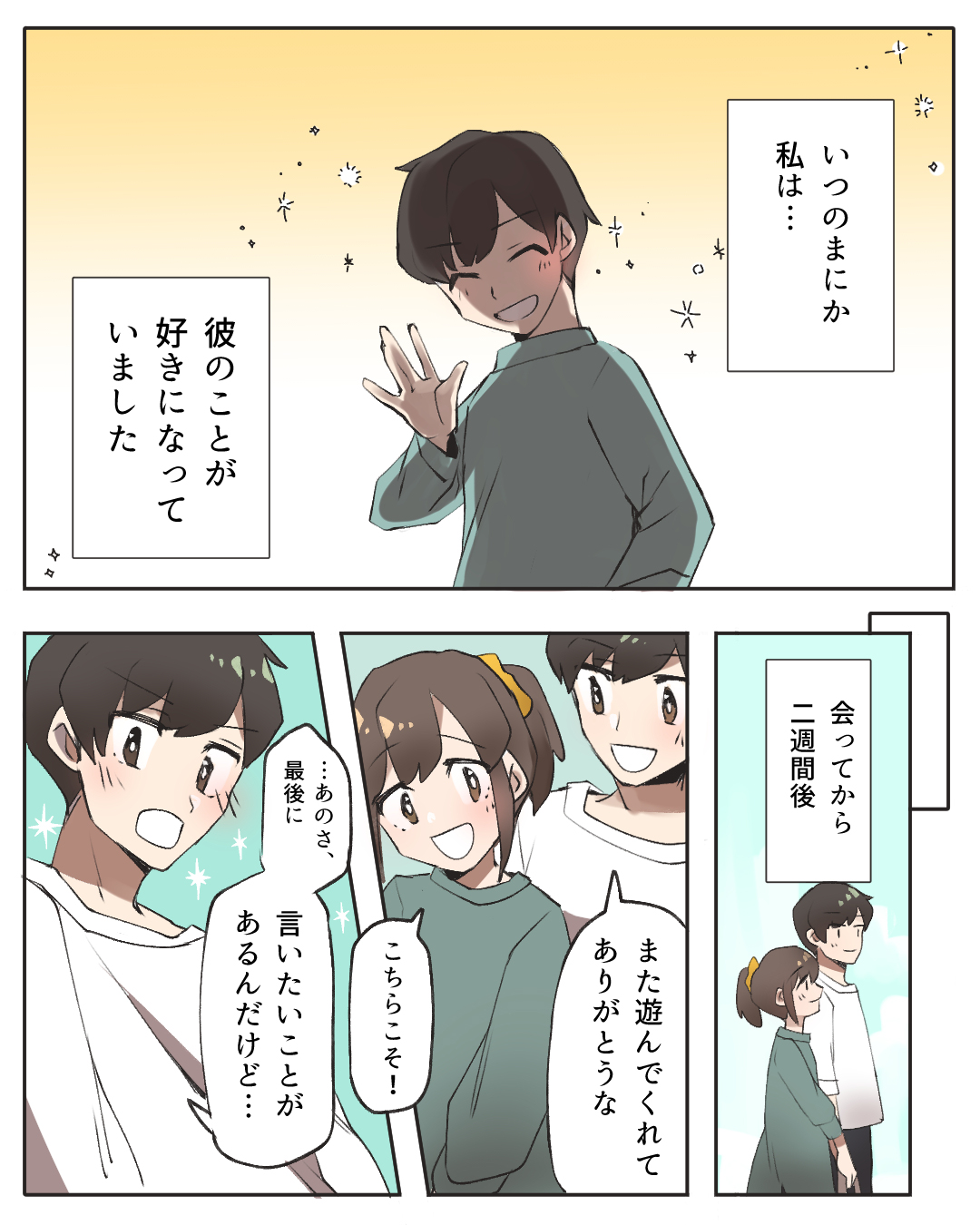 意外な出逢い【Lovely漫画】 オリジナル漫画 2024年10月15日 目次 こちらのLovely漫画もおすすめ! 彼の手のぬくもり【Lovely漫画】 両親とケンカして家を飛び出した。帰りたくない…でも寂しくて、思わず片思い中の彼に電話をかけた。彼は私の元まで駆けつけてくれて…。©倖/エピソード:なり 逆告白【Lovely漫画】 好きな人から映画に誘われた!これって「デート」だよね…?©yuzuna/エピソード:日葵 既視感のある女性14「大人数の飲み会で時間を取るのも悪いので一杯目をビールで合わせるがやはり全く酒が進まない女性」【わたし氏漫画】 ©わたし氏 口コミ8万件以上!当たると評判の電話占い「みん電占い」で好きな人の気持ちを聞いてみた[PR] 「電話占いって当たるの…?」不安な人も多いですよね。電話占いの『みんなの電話占い』は8万件以上の口コミや占い師の先生との実際の会話まで見れる体験談も豊富だから安心です。さらに、Lovelyサイトから登録した方限定で、初回3000円オフクーポンをプレゼント! ライター Lovely編集部 編集部レポや最新情報など皆さんの「知りたい」をお届け!よろしくお願いします♡ Related article / 関連記事 オリジナル漫画 メンヘラ彼氏にサヨナラ【Lovely漫画】 ©みんみ 2022年3月29日 オリジナル漫画 年下イケメン彼氏に翻弄されるオンナの毎日#3【Lovely漫画】 ©みんみ 2022年3月29日 オリジナル漫画 2人暮らしのゆる家事日記~気まぐれ旦那の献立作りの巻き~後編【Lovely漫画】 ©みんみ 2022年3月29日 オリジナル漫画 年下イケメン彼氏に翻弄されるオンナの毎日#1【Lovely漫画】 ©みんみ「初めての○○の話 前編」 2022年3月29日 オリジナル漫画 年下イケメン彼氏に翻弄されるオンナの毎日#2【Lovely漫画】 ©みんみ「初めての○○の話 後編」 2022年3月29日 1 2 3 オリジナル漫画 よかったらシェアしてね! URLをコピーしました! URLをコピーしました! ヤベェ同期に困ってます!!30【稲漫画】 縮毛矯正を自宅で!セルフで髪をケアしよう!
