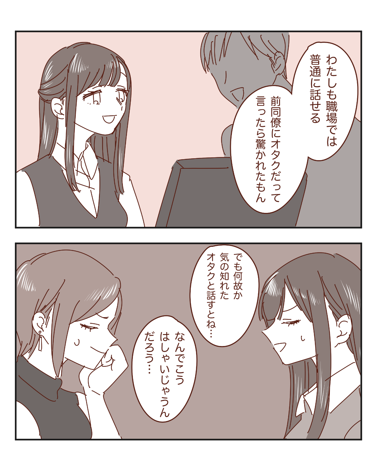 既視感のある女性16 「小綺麗にしているが独特の雰囲気から同族に察知されるオタクの女性」【わたし氏漫画】 オリジナル漫画 2022年3月29日 目次 わたし氏さんの連載一覧はこちら 既視感のある女性13「自撮りをする際は必ず同じアングルで3、4パターンは撮影する女性」【わたし氏漫画】 ©わたし氏 既視感のある女性14「大人数の飲み会で時間を取るのも悪いので一杯目をビールで合わせるがやはり全く酒が進まない女性」【わたし氏漫画】 ©わたし氏 既視感のある女性15 「独特の着こなしで洋服本来の用途について考えさせてくる女性」【わたし氏漫画】 ©わたし氏 口コミ8万件以上!当たると評判の電話占い「みん電占い」で好きな人の気持ちを聞いてみた[PR] 「電話占いって当たるの…?」不安な人も多いですよね。電話占いの『みんなの電話占い』は8万件以上の口コミや占い師の先生との実際の会話まで見れる体験談も豊富だから安心です。さらに、Lovelyサイトから登録した方限定で、初回3000円オフクーポンをプレゼント! ライター わたし氏 「既視感のある女性」をお届けしています。Instagram【@watashi_death】 Related article / 関連記事 オリジナル漫画 顔に出にくいカップルの話【Lovely漫画】 azusaさんオリジナル、読み切り短編漫画の連載スタート!(不定期更新) 2022年3月29日 オリジナル漫画 里中さんと山内くんの両片想い【Lovely漫画】 告白しようと思うもいつも失敗してしまう里中さんと、勇気を出せずにいる山内くんの、初々しい短編連載スタート!©azusa 2022年3月29日 オリジナル漫画 結局、恋愛にも就職にもスナックでのバイトが一番役に立ったという話1【Lovely漫画】 女度アップや仕事につかえる小ネタなどを綴る新連載スタート!©ホシノモナカ 2022年3月29日 オリジナル漫画 2人暮らしのゆる家事日記~再生栽培のススメ~【連載】【Lovely漫画】 ©みんみ 2022年3月29日 オリジナル漫画 年下イケメン彼氏に翻弄されるオンナの毎日#4【Lovely漫画】 ©みんみ 2022年3月29日 恋愛漫画 お付き合い編 2【magari漫画】 みぎと雪さんのカップルエッセイ♡ ©magari 2022年10月5日 恋愛漫画 お付き合い編 3【magari漫画】 みぎと雪さんのカップルエッセイ♡ ©magari 2022年10月5日 恋愛漫画 お付き合い編 4【magari漫画】 みぎと雪さんのカップルエッセイ♡ ©magari 2022年10月5日 恋愛漫画 お付き合い編 5【magari漫画】 みぎと雪さんのカップルエッセイ♡ ©magari 2022年10月5日 恋愛漫画 お付き合い編 6【magari漫画】 みぎと雪さんのカップルエッセイ♡ ©magari 2022年10月5日 恋愛漫画 お付き合い編 7【magari漫画】 みぎと雪さんのカップルエッセイ♡ ©magari 2022年10月5日 連載 20歳で妊娠した話1【azusa】 ~わたしと夫がぷいちゃんに出会うまで~©azusa 2022年3月29日 連載 20歳で妊娠した話2【azusa】 ~わたしと夫がぷいちゃんに出会うまで~©azusa 2022年3月29日 連載 20歳で妊娠した話3【azusa】 ~わたしと夫がぷいちゃんに出会うまで~©azusa 2022年3月29日 連載 20歳で妊娠した話4【azusa】 ~わたしと夫がぷいちゃんに出会うまで~©azusa 2022年3月29日 連載 20歳で妊娠した話5【azusa】 ~わたしと夫がぷいちゃんに出会うまで~©azusa 2022年3月29日 連載 20歳で妊娠した話6【azusa】 ~わたしと夫がぷいちゃんに出会うまで~©azusa 2022年3月29日 連載 20歳で妊娠した話7【azusa】 ~わたしと夫がぷいちゃんに出会うまで~©azusa 2022年3月29日 連載 20歳で妊娠した話8【azusa】 ~わたしと夫がぷいちゃんに出会うまで~©azusa 2022年3月29日 連載 20歳で妊娠した話9【azusa】 ~わたしと夫がぷいちゃんに出会うまで~©azusa 2022年3月29日 1 2 3 オリジナル漫画 よかったらシェアしてね! URLをコピーしました! URLをコピーしました! 【夢占い】彼女に浮気された夢の意味13選|もしかして予知夢?心理状態も解説 | plush 恋愛相談はどこで?相談所・掲示板・アプリでする?男友達にする?