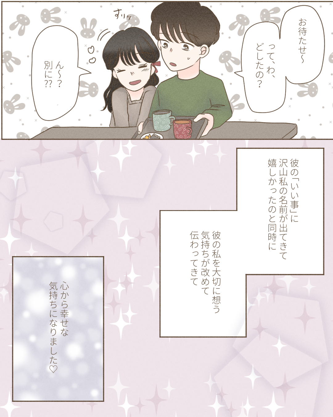 良い事リスト【Lovely漫画】 オリジナル漫画 2022年3月29日 目次 ▼こちらのLovely漫画もおすすめ! 恋する季節に ー春ー 1【beth(ベス)漫画】 SNSで大人気beth(ベス)さんが送る胸キュン間違いなしの創作ストーリー!呼春ちゃん編♡ ©beth(ベス) 同棲会議!! 1【山田ぽむち漫画】 陰キャの彼氏と同棲するまで ©山田ぽむち 口コミ8万件以上!当たると評判の電話占い「みん電占い」で好きな人の気持ちを聞いてみた[PR] 「電話占いって当たるの…?」不安な人も多いですよね。電話占いの『みんなの電話占い』は8万件以上の口コミや占い師の先生との実際の会話まで見れる体験談も豊富だから安心です。さらに、Lovelyサイトから登録した方限定で、初回3000円オフクーポンをプレゼント! 既視感のある女性7「スカートが下着に巻き込まれていることに気付かない女性」【わたし氏漫画】 ©わたし氏 ライター Lovely編集部 編集部レポや最新情報など皆さんの「知りたい」をお届け!よろしくお願いします♡ Related article / 関連記事 オリジナル漫画 メンヘラ彼氏にサヨナラ【Lovely漫画】 ©みんみ 2022年3月29日 オリジナル漫画 年下イケメン彼氏に翻弄されるオンナの毎日#3【Lovely漫画】 ©みんみ 2022年3月29日 オリジナル漫画 2人暮らしのゆる家事日記~気まぐれ旦那の献立作りの巻き~後編【Lovely漫画】 ©みんみ 2022年3月29日 オリジナル漫画 年下イケメン彼氏に翻弄されるオンナの毎日#1【Lovely漫画】 ©みんみ「初めての○○の話 前編」 2022年3月29日 オリジナル漫画 年下イケメン彼氏に翻弄されるオンナの毎日#2【Lovely漫画】 ©みんみ「初めての○○の話 後編」 2022年3月29日 1 2 オリジナル漫画 よかったらシェアしてね! URLをコピーしました! URLをコピーしました! 【夢占い】彼女に浮気された夢の意味13選|もしかして予知夢?心理状態も解説 | plush 恋愛相談はどこで?相談所・掲示板・アプリでする?男友達にする?