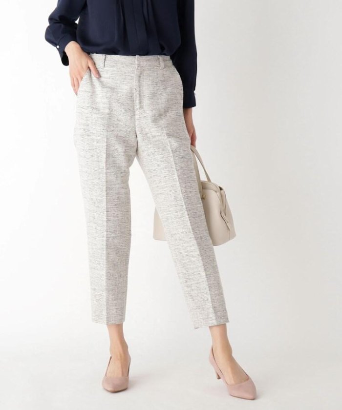 「ツイードスリムテーパード アンクルパンツ ¥6,589(税込)」。バックウエストがゴム使用で、着心地も抜群です。