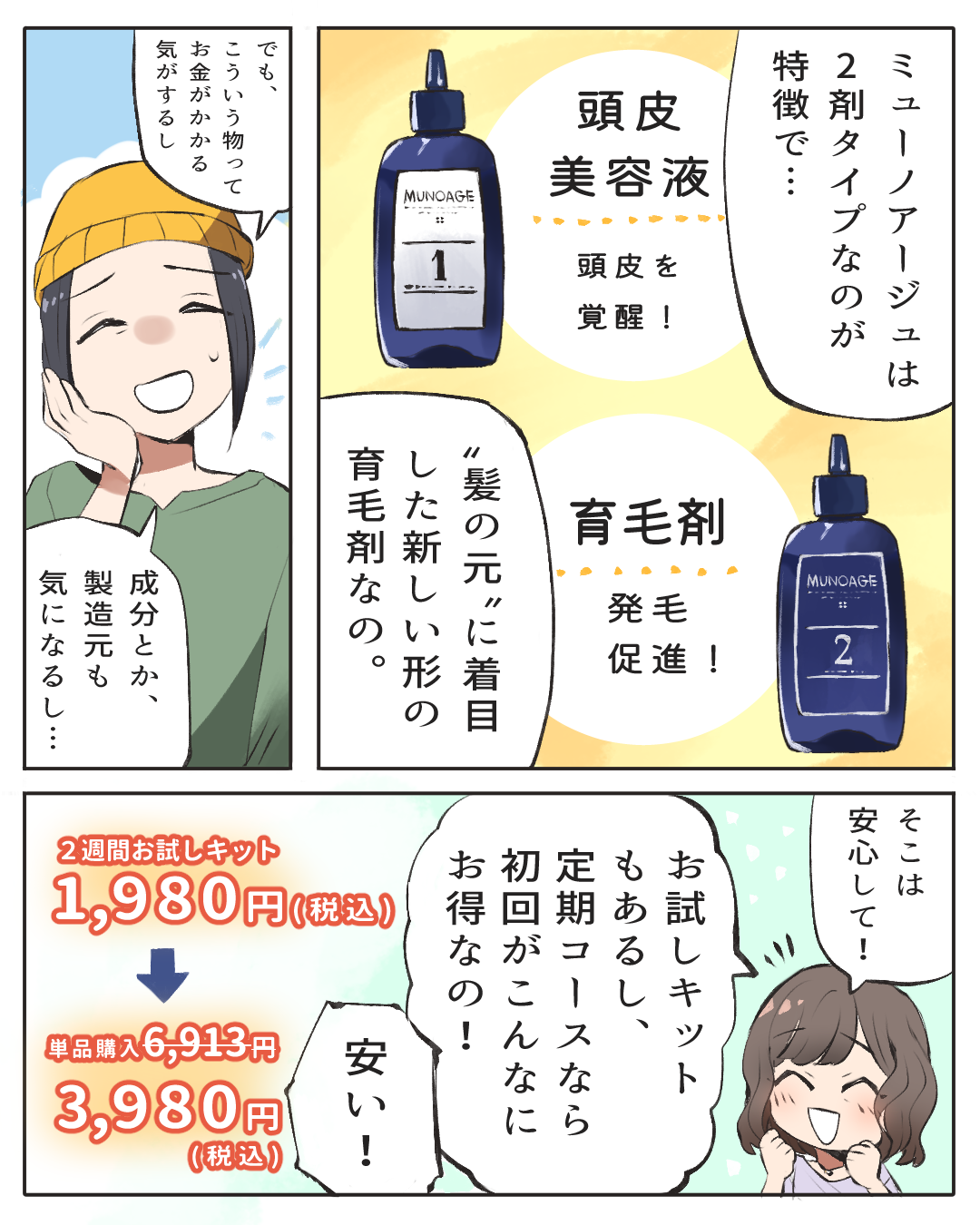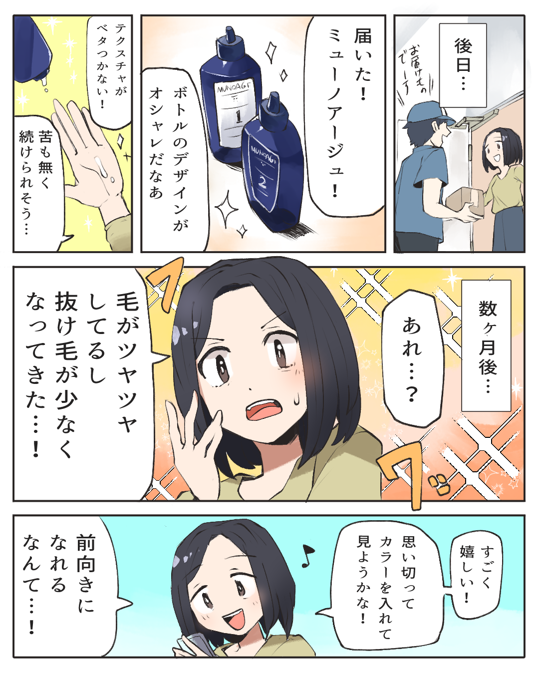 身近な人に褒められると気分も上がりうれしいですよね。ミューノアージュは、女性のために開発された育毛剤なので安心して使うことができます。