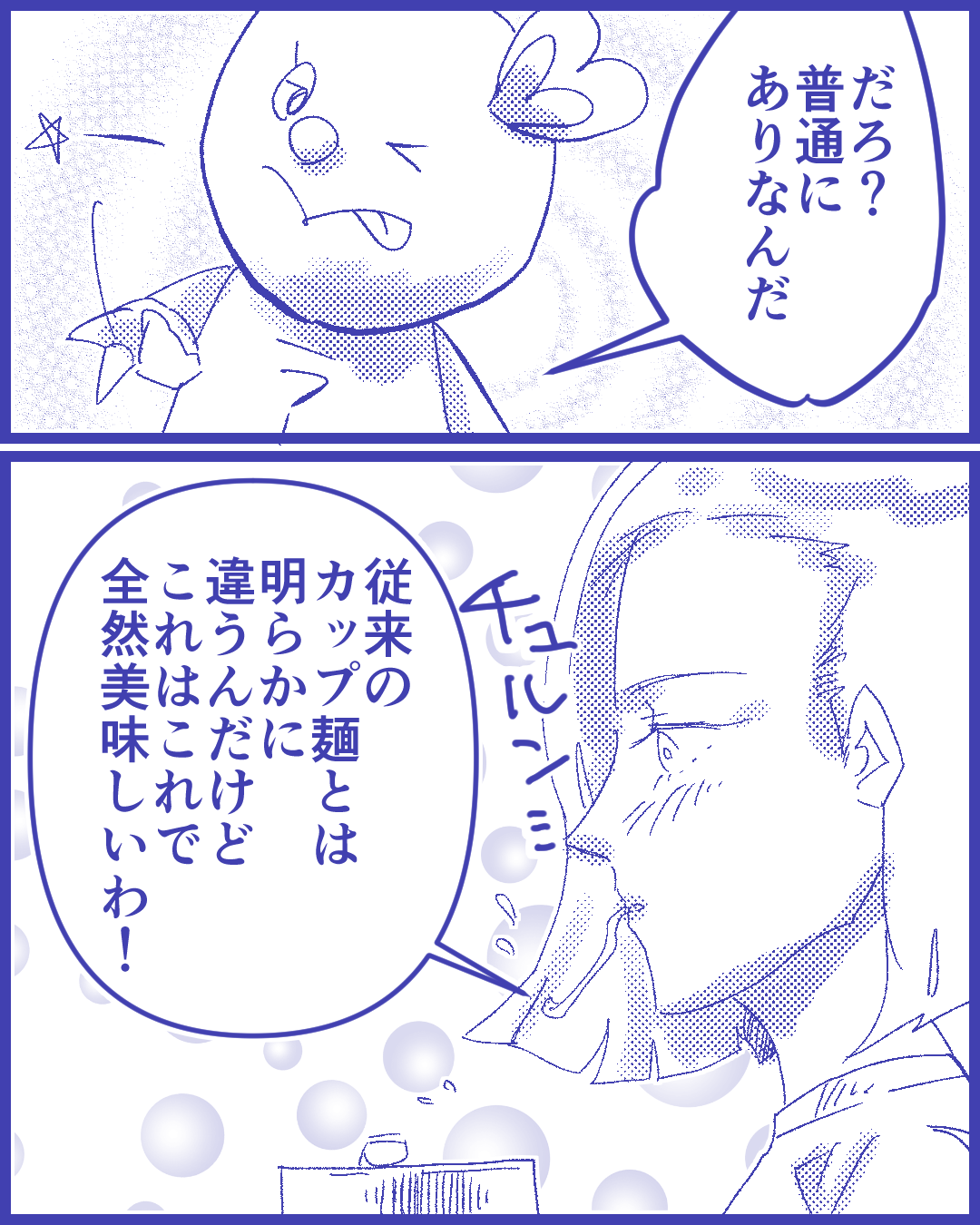 バリキャリクール美女と推し活&手抜き料理が楽しみなズボラ女子2つの顔を持つ、純(じゅん)は、ある日突然目の前に現れた、自称「健康オタクのカップラーメンの妖精」と共同生活中。そんな純にも恋の予感!?©ゆに