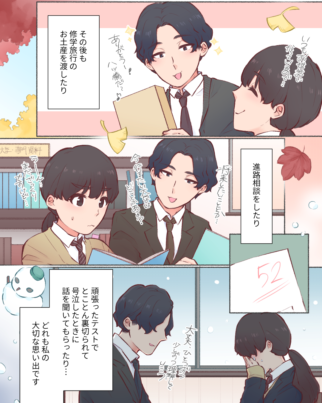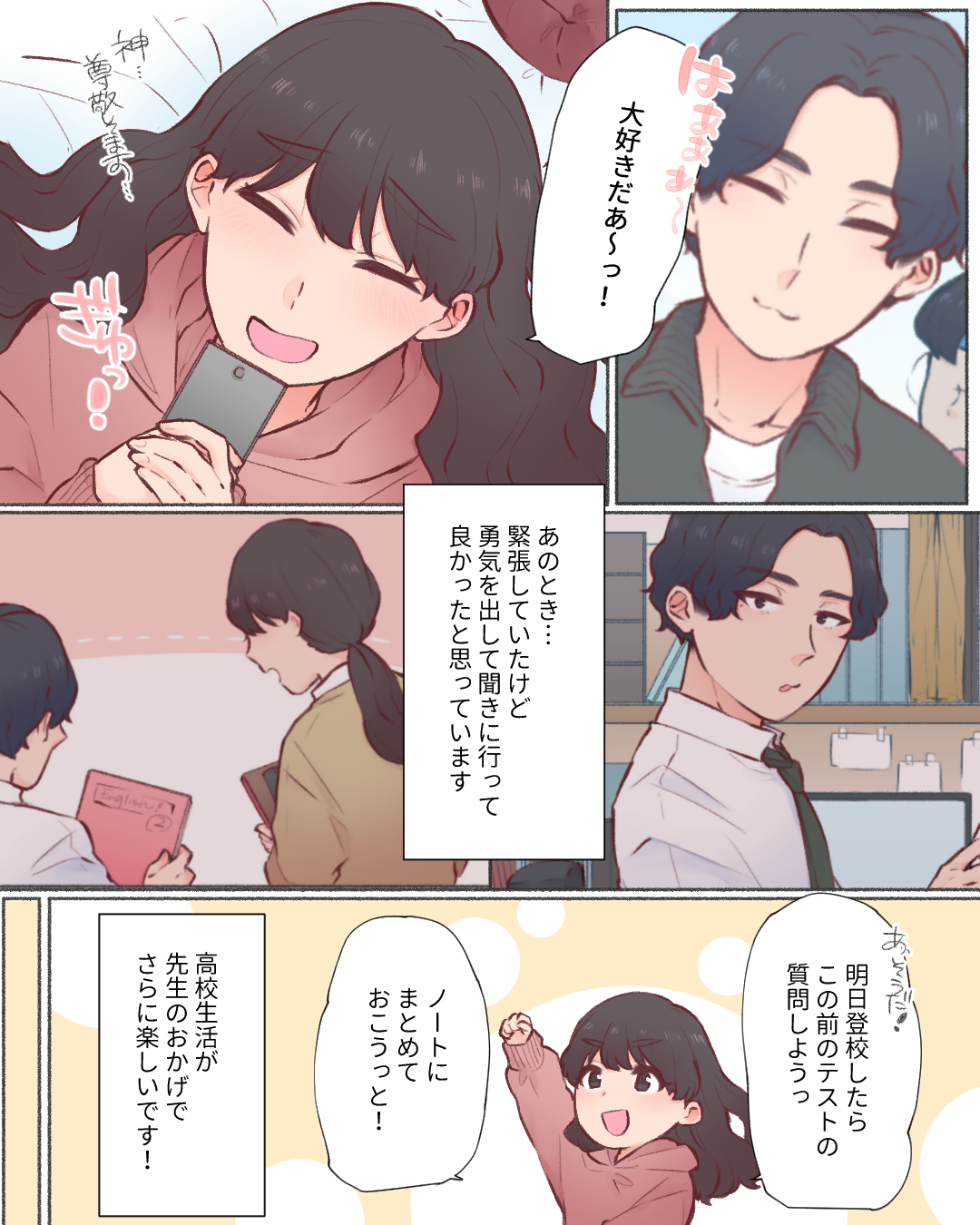 わたしの先生【Lovely漫画】 オリジナル漫画 2024年10月15日 目次 倖さんの作品をもっと読む! 倖さんの作品一覧【Lovely漫画】 倖さんの人気作をおまとめしています! こちらのLovely漫画もおすすめ! 先生の車【Lovely漫画】 中学1年の頃のできた好きな人は顧問の先生。まわりにはバレないように先生を想っていたある日…©あんころもち/エピソード:さとう 既視感のある女性19「飛行機の時間が迫っているのに準備が全く捗らずもう間に合わないかもと思い始める女性」【わたし氏漫画】 ©わたし氏 強迫性障害になった話1【ゆめの漫画】 ゆめのさんが病気を体験し現在に至るまでのエッセイ漫画©ゆめの※暴力的な表現が登場します。苦手な方はご注意ください。 貧乳コンプレックスをこじらせた話1【倉間漫画】 昔からのコンプレックス「貧乳」を誤魔化し続けてきたある日、転機が…©倉間 ライター Lovely編集部 編集部レポや最新情報など皆さんの「知りたい」をお届け!よろしくお願いします♡ Related article / 関連記事 オリジナル漫画 メンヘラ彼氏にサヨナラ【Lovely漫画】 ©みんみ 2022年3月29日 オリジナル漫画 年下イケメン彼氏に翻弄されるオンナの毎日#3【Lovely漫画】 ©みんみ 2022年3月29日 オリジナル漫画 2人暮らしのゆる家事日記~気まぐれ旦那の献立作りの巻き~後編【Lovely漫画】 ©みんみ 2022年3月29日 オリジナル漫画 年下イケメン彼氏に翻弄されるオンナの毎日#1【Lovely漫画】 ©みんみ「初めての○○の話 前編」 2022年3月29日 オリジナル漫画 年下イケメン彼氏に翻弄されるオンナの毎日#2【Lovely漫画】 ©みんみ「初めての○○の話 後編」 2022年3月29日 1 2 オリジナル漫画 よかったらシェアしてね! URLをコピーしました! URLをコピーしました! アプリから始まった恋愛【Lovely漫画】 縮毛矯正を自宅で!セルフで髪をケアしよう!