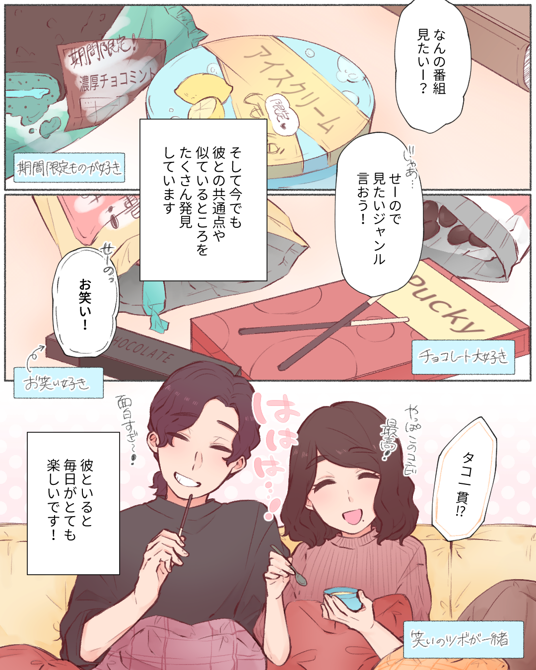 お揃いのホクロ【Lovely漫画】 オリジナル漫画 2022年3月29日 目次 ▼こちらのLovely漫画もおすすめ! いつもの休日【Lovely漫画】 感情表現が苦手でとても大人しい私の彼氏は、自分の思いを言葉にして伝えることがあまりありません。ある土曜日いつも通り彼と過ごしているとき、ヤキモチを全開表現する彼を初めて目にすることに…!©倖/エピソード:あちゃこ 心臓が持たないことは秘密…【Lovely漫画】 いつも塩対応の彼の急な甘々に心臓が持ちません…♡©倖/エピソード:ゆったん 同棲会議!! 1【山田ぽむち漫画】 陰キャの彼氏と同棲するまで ©山田ぽむち ふたりのなれそめ 0【まつり漫画】 まつりとにをくんの、出会いのおはなし ©まつり ライター Lovely編集部 編集部レポや最新情報など皆さんの「知りたい」をお届け!よろしくお願いします♡ Related article / 関連記事 オリジナル漫画 メンヘラ彼氏にサヨナラ【Lovely漫画】 ©みんみ 2022年3月29日 オリジナル漫画 年下イケメン彼氏に翻弄されるオンナの毎日#3【Lovely漫画】 ©みんみ 2022年3月29日 オリジナル漫画 2人暮らしのゆる家事日記~気まぐれ旦那の献立作りの巻き~後編【Lovely漫画】 ©みんみ 2022年3月29日 オリジナル漫画 年下イケメン彼氏に翻弄されるオンナの毎日#1【Lovely漫画】 ©みんみ「初めての○○の話 前編」 2022年3月29日 オリジナル漫画 年下イケメン彼氏に翻弄されるオンナの毎日#2【Lovely漫画】 ©みんみ「初めての○○の話 後編」 2022年3月29日 1 2 オリジナル漫画 よかったらシェアしてね! URLをコピーしました! URLをコピーしました! 【夢占い】彼女に浮気された夢の意味13選|もしかして予知夢?心理状態も解説 | plush 恋愛相談はどこで?相談所・掲示板・アプリでする?男友達にする?