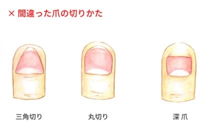 また、爪を短く切り過ぎる「深爪」をすると、巻き爪や陥入爪(かんにゅうそう=爪の角が皮膚に刺さって炎症を起こした状態)の原因になると言われています。