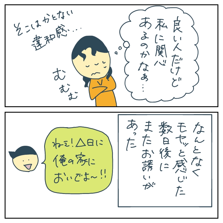 なんでしつこく家に誘うの?それは恐怖の理由だった 7【稲漫画】 オリジナル漫画 2022年3月29日 ▼前回のお話はこちら なんでしつこく家に誘うの?それは恐怖の理由だった 6【稲漫画】 しつこく家に誘う男性の恐怖の理由©稲 次を読む なんでしつこく家に誘うの?それは恐怖の理由だった 8【稲漫画】 しつこく家に誘う男性の恐怖の理由©稲 稲さんの漫画一覧はこちら 毎日更新!サラリーウーマン稲のエッセイ漫画 毎日更新!サラリーウーマン稲のエッセイ漫画 こちらのlovely漫画もオススメ! 初デートの話1【倉間漫画】 南くんと付き合う前のお話©倉間 完全脈なし オンライン一目ぼれから付き合った話 1【うめ漫画】 脈なしの一目ぼれから付き合った話©うめ 学歴コンプだけど上京してモテたい 1 【山田ぽむち漫画】 学歴コンプな私が上京してモテたい話 ©山田ぽむち ライター 稲 エッセイ漫画を描くサラリーウーマン!Instagram【@inasan_mainichi】 目次Related article / 関連記事 オリジナル漫画 メンヘラ彼氏にサヨナラ【Lovely漫画】 ©みんみ 2022年3月29日 オリジナル漫画 年下イケメン彼氏に翻弄されるオンナの毎日#3【Lovely漫画】 ©みんみ 2022年3月29日 オリジナル漫画 2人暮らしのゆる家事日記~気まぐれ旦那の献立作りの巻き~後編【Lovely漫画】 ©みんみ 2022年3月29日 オリジナル漫画 年下イケメン彼氏に翻弄されるオンナの毎日#1【Lovely漫画】 ©みんみ「初めての○○の話 前編」 2022年3月29日 オリジナル漫画 年下イケメン彼氏に翻弄されるオンナの毎日#2【Lovely漫画】 ©みんみ「初めての○○の話 後編」 2022年3月29日 オリジナル漫画 よかったらシェアしてね! URLをコピーしました! URLをコピーしました! 【夢占い】彼女に浮気された夢の意味13選|もしかして予知夢?心理状態も解説 | plush 恋愛相談はどこで?相談所・掲示板・アプリでする?男友達にする?