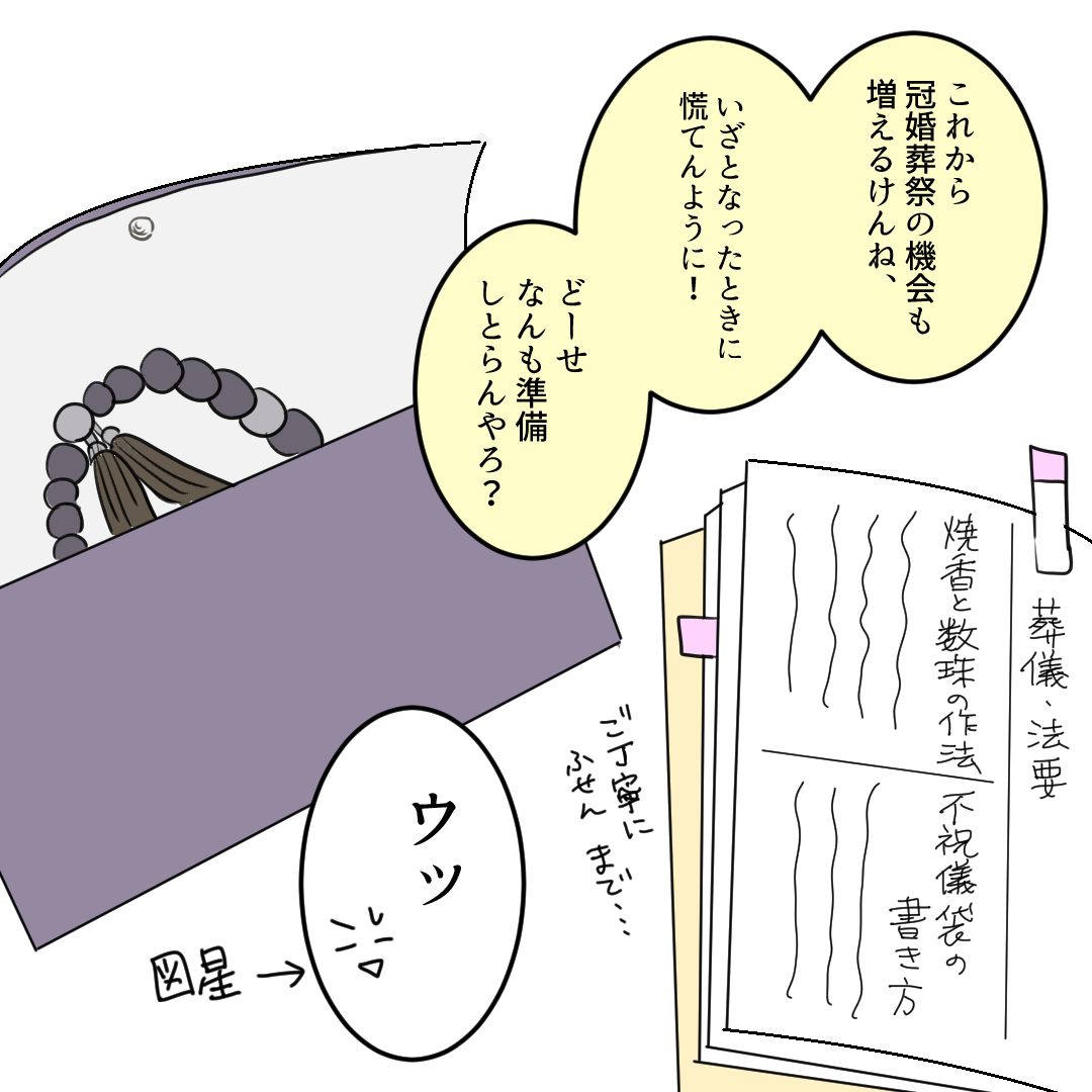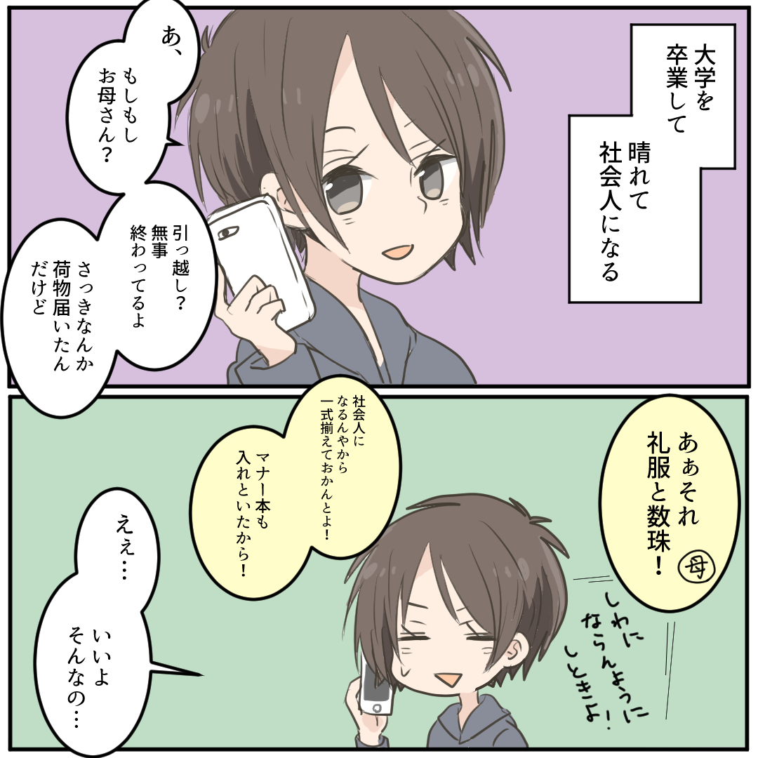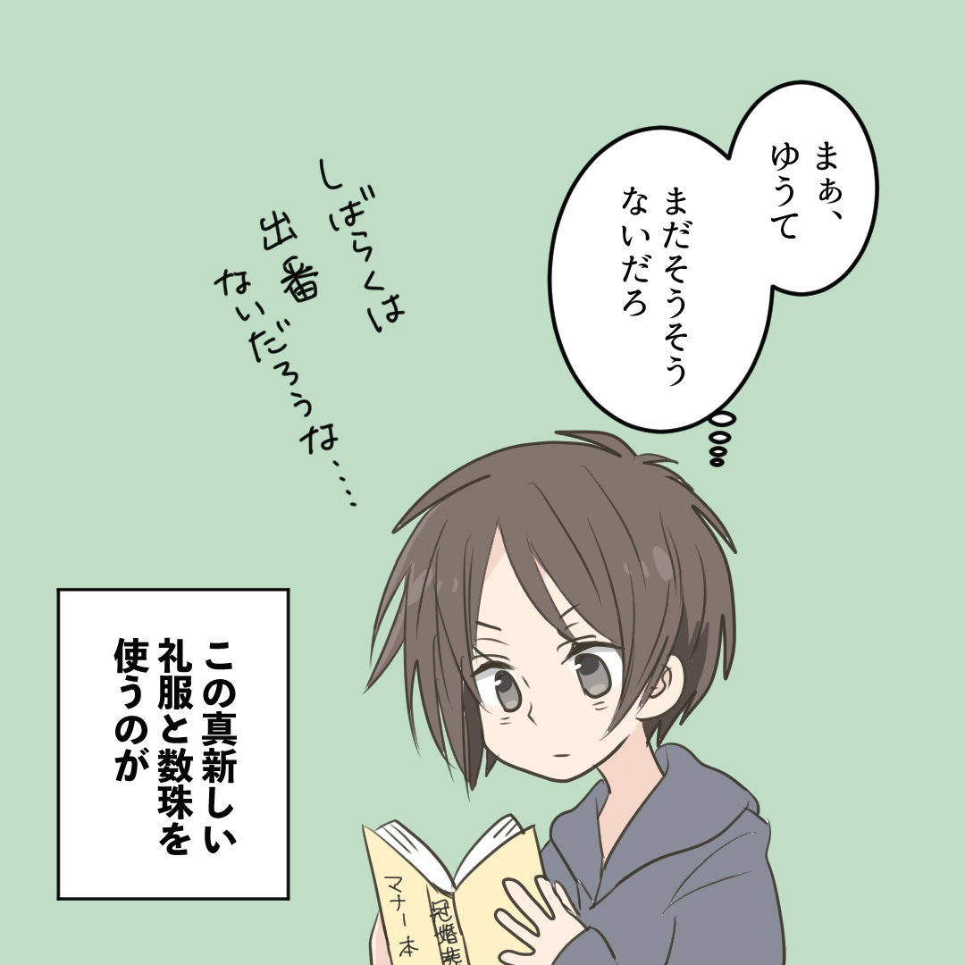 真新しい礼服と数珠を使うのがあなたになるなんて…©倉間