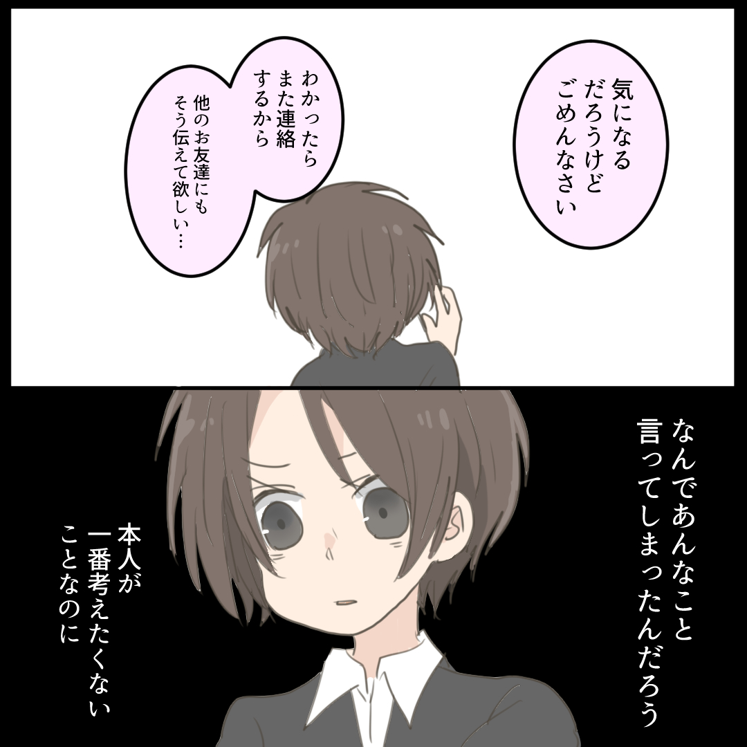 あの子がいなくなった日 5【倉間漫画】 オリジナル漫画 2022年3月29日 ▼前回のお話はこちら あの子がいなくなった日 4【倉間漫画】 真新しい礼服と数珠を使うのがあなたになるなんて…©倉間 目次Related article / 関連記事 オリジナル漫画 メンヘラ彼氏にサヨナラ【Lovely漫画】 ©みんみ 2022年3月29日 オリジナル漫画 年下イケメン彼氏に翻弄されるオンナの毎日#3【Lovely漫画】 ©みんみ 2022年3月29日 オリジナル漫画 2人暮らしのゆる家事日記~気まぐれ旦那の献立作りの巻き~後編【Lovely漫画】 ©みんみ 2022年3月29日 オリジナル漫画 年下イケメン彼氏に翻弄されるオンナの毎日#1【Lovely漫画】 ©みんみ「初めての○○の話 前編」 2022年3月29日 オリジナル漫画 年下イケメン彼氏に翻弄されるオンナの毎日#2【Lovely漫画】 ©みんみ「初めての○○の話 後編」 2022年3月29日 1 2 オリジナル漫画 よかったらシェアしてね! URLをコピーしました! URLをコピーしました! 【夢占い】彼女に浮気された夢の意味13選|もしかして予知夢?心理状態も解説 | plush 恋愛相談はどこで?相談所・掲示板・アプリでする?男友達にする?