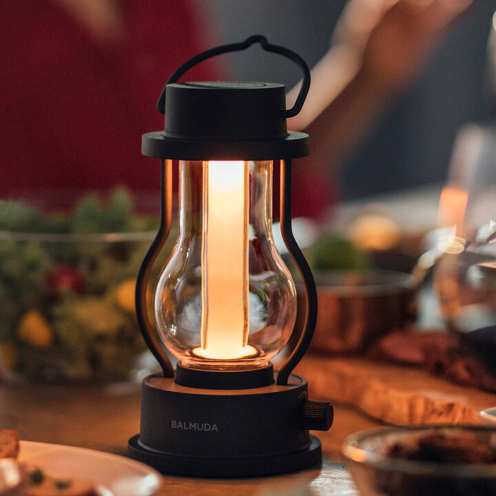 BALMUDAのThe Lanternは、充電式のコードレス。キャンドルのようにゆらめく暖色灯から、読書などをする際に使える温白色の灯りにもチェンジが可能です。生活防水レベルの防滴性能を備えているため、リビング、寝室の他バルコニーでも活躍します。