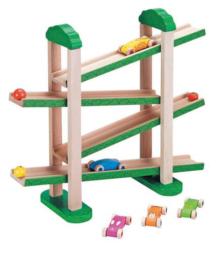 動く車を目で追いかけながら夢中になって遊べちゃうスロープトイです。車には動物の顔がついていて、「森のうんどう会」というおもちゃ名のように、動物たちが森を駆け抜けどれが一等賞になるかレースを楽しむこともできます。