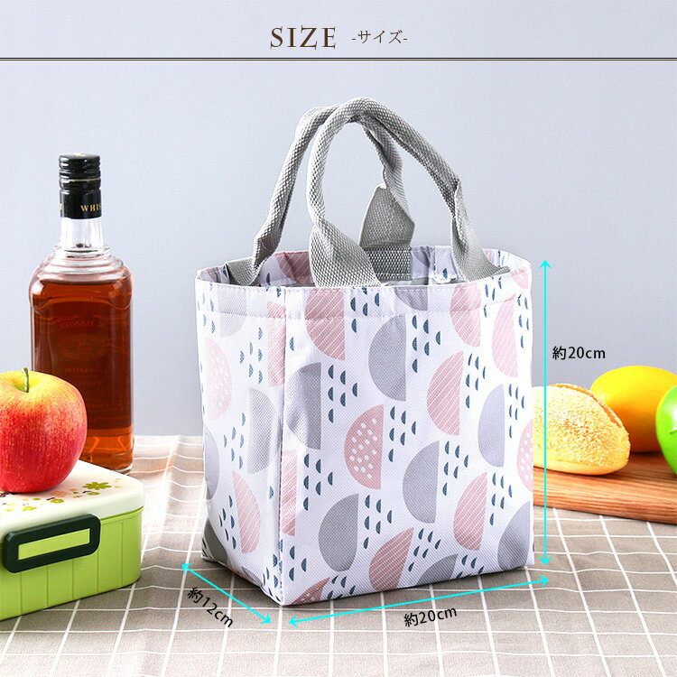 内側は保温も保冷もできる全面アルミシート。巾着型で中身が飛び出さないので、職場へ持って行くランチだけでなくピクニックなどアウトドアにもぴったりです。丈夫ながらコンパクトに折り畳めるのも便利なポイント。