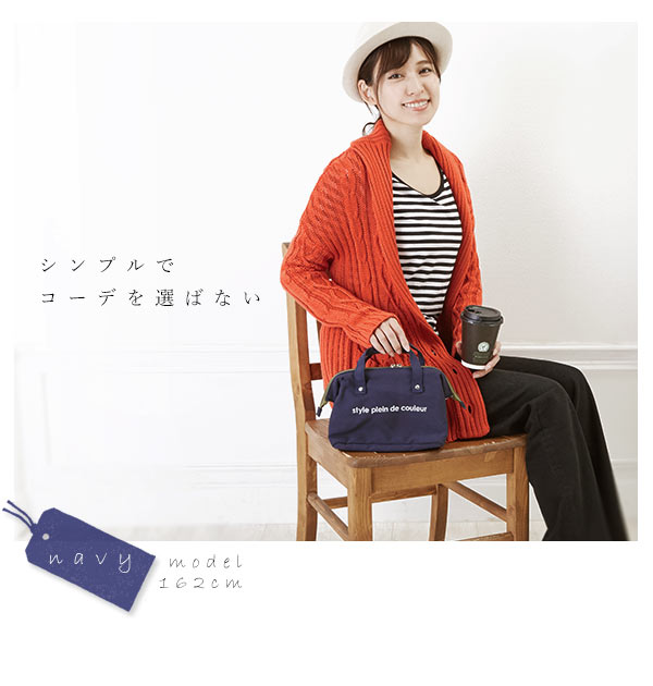 ファスナーで閉じられるタイプで、開け口が大きいのでお弁当の出し入れも安定して行えます。大きめの持ち手が特徴的でかわいらしくもあり、持ちやすいのも長所。サブバッグとしても落ち着きある色とデザインです。
