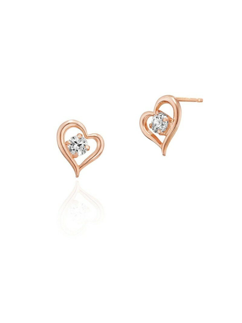 ピンクゴールドのハートモチーフの中でキュービックジルコニアが煌めく、可憐な印象の4℃ブランドピアスです。素材に10Kピンクゴールドを採用しており、高級感と女性らしさを引き立てます。