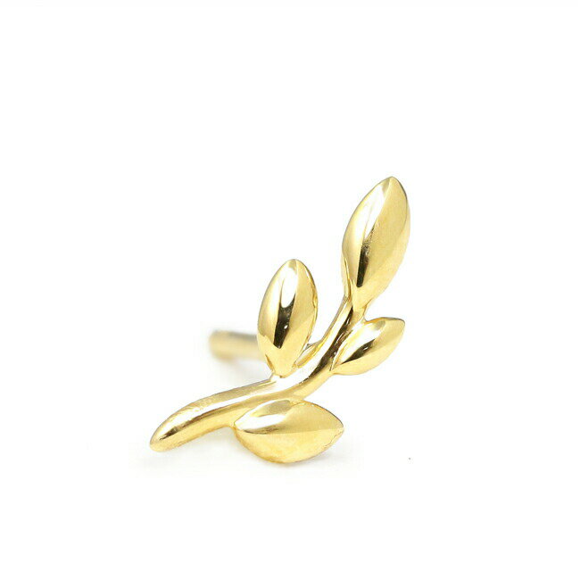 K18を使用した、平和の象徴のオリーブをモチーフにした片耳ピアスです。丸くてぽってりしたオリーブの葉は耳のラインに沿って流れており、すっきりとしたシルエットに見せてくれます。