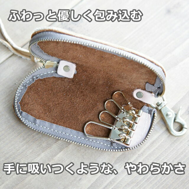 4本ある鍵フックにはスマートキーに最適な大きめフックも付いています。ファスナー付きなので鞄の中で他の物に傷をつける心配不要。ナスカンで吊り下げることも可能です。