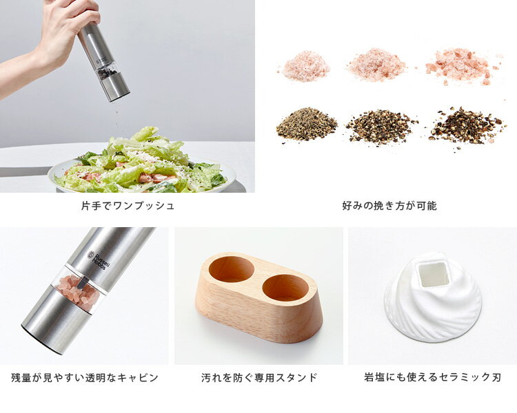 次にオススメするのが、電動ミルです。料理好きの男性は料理で塩・コショウを使う場面が多いですよね。電動ミルなら、炒め物の最中でも片手で挽き立てのスパイスを投入することが出来ます。
