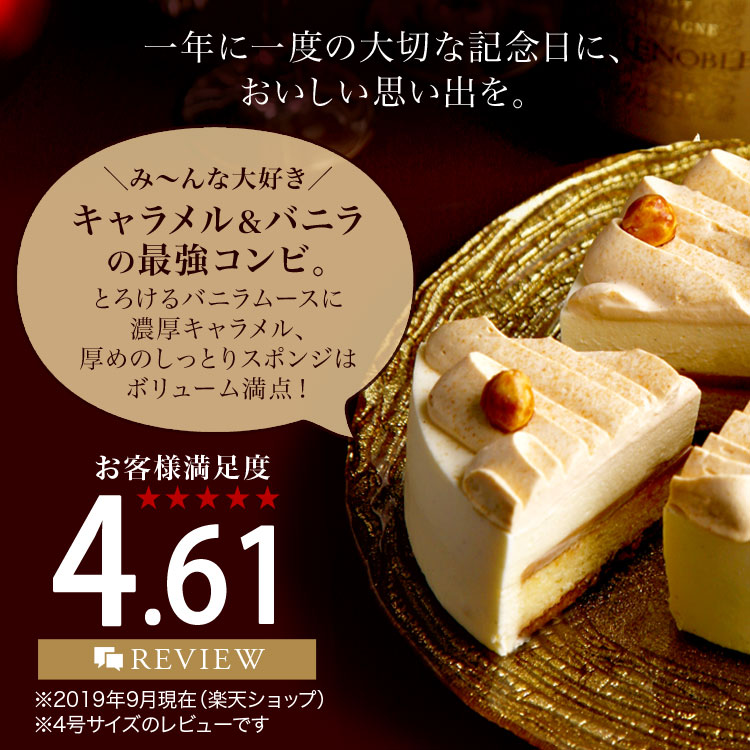 パティシエの世界コンクールのアントルメ部門にて優勝した、絶品のムースケーキ。バニラの香りが楽しめるムースと、キャラメルクリームの最強コンビが美味しさの秘密です。