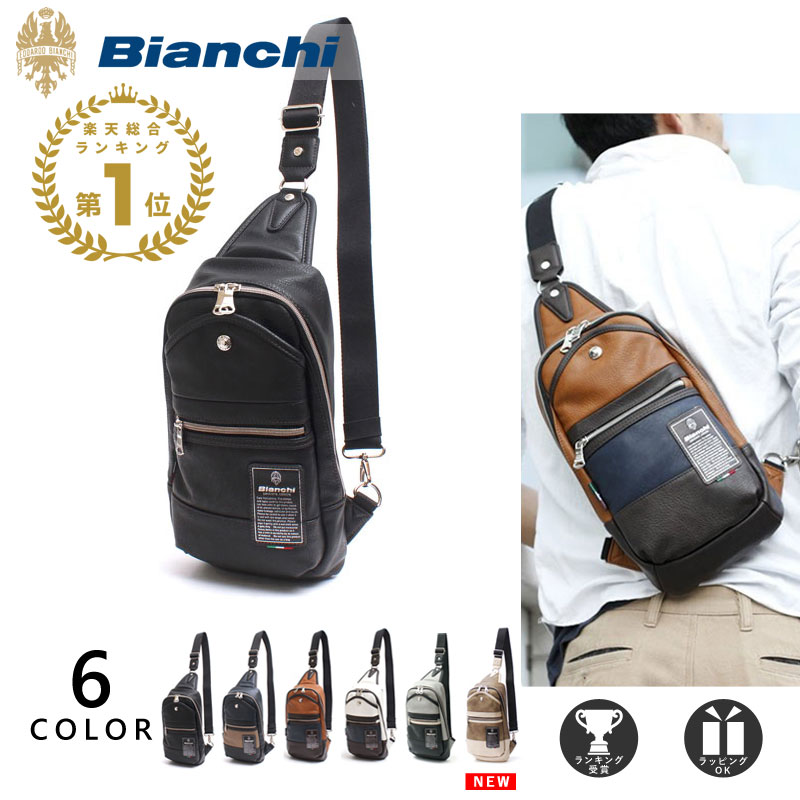 こちらのビアンキのボディバッグは価格は少し高めですが、耐久性もデザインも申し分なし!Tシャツとデニムなどのコーデにも非常によく似合います。