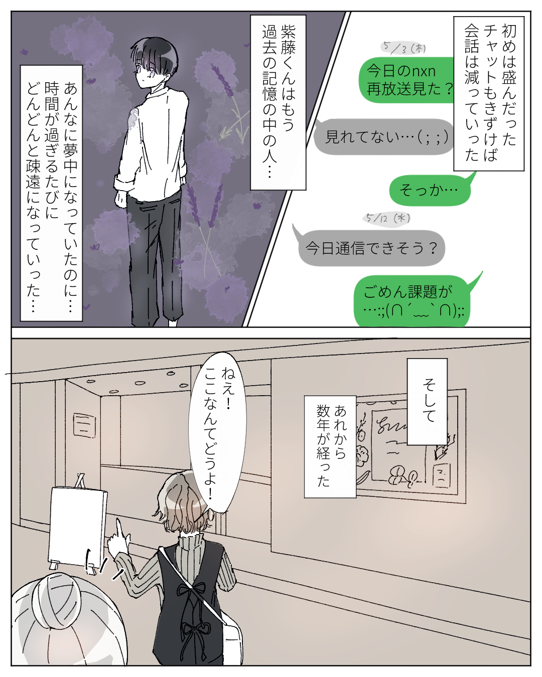 今でも少し後悔している。【Lovely漫画】 オリジナル漫画 2025年1月21日 目次 suiさんの作品をもっと読む! suiさんの作品一覧【Lovely漫画】 suiさんの人気作をおまとめしています! こちらのLovely漫画もおすすめ♡ 電車の恋のオハナシ【Lovely漫画】 電車で出会った彼に片想い中の私。その彼と友達がまさかの知り合いで急接近も、なかなか積極的になれず…©あやたきくこ/エピソード:にっち 告白の決心【Lovely漫画】 バイト先にいる気になる先輩。プライベートと仕事のギャップに惹かれ始めた私は、先輩と連絡先の交換をして更に仲良くなっていき…©倖/エピソード:なすちゃん まさかの袖ボタン【Lovely漫画】 笑顔が素敵な2つ上の先輩に一目惚れ。頑張って距離を縮めていきました。そして先輩が卒業を迎え…©kowari/エピソード:こなつ あの日、素直になれなかったから【Lovely漫画】 ずっと後悔してる。勇気を出して、素直になれば…。©てこ/エピソード:みなみ ライター Lovely編集部 編集部レポや最新情報など皆さんの「知りたい」をお届け!よろしくお願いします♡ Related article / 関連記事 オリジナル漫画 メンヘラ彼氏にサヨナラ【Lovely漫画】 ©みんみ 2022年3月29日 オリジナル漫画 年下イケメン彼氏に翻弄されるオンナの毎日#3【Lovely漫画】 ©みんみ 2022年3月29日 オリジナル漫画 2人暮らしのゆる家事日記~気まぐれ旦那の献立作りの巻き~後編【Lovely漫画】 ©みんみ 2022年3月29日 オリジナル漫画 年下イケメン彼氏に翻弄されるオンナの毎日#1【Lovely漫画】 ©みんみ「初めての○○の話 前編」 2022年3月29日 オリジナル漫画 年下イケメン彼氏に翻弄されるオンナの毎日#2【Lovely漫画】 ©みんみ「初めての○○の話 後編」 2022年3月29日 1 2 3 4 オリジナル漫画 よかったらシェアしてね! URLをコピーしました! URLをコピーしました! モラハラ夫は改心するのか21【稲漫画】 コストコのおすすめ雑貨ランキングTOP21!おしゃれでかわいい!