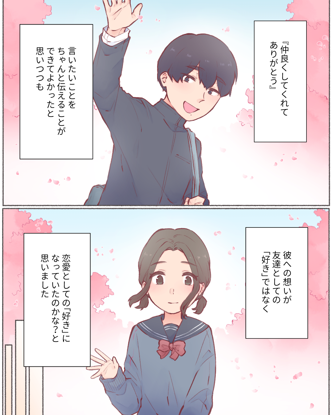 もしかしたら好きだったのかな【Lovely漫画】 オリジナル漫画 2024年12月13日 目次 倖さんの作品をもっと読む! 倖さんの作品一覧【Lovely漫画】 倖さんの人気作をおまとめしています! こちらのLovely漫画もおすすめ! 淡い青春の思い出【Lovely漫画】 ある日、友達からの一言で意識するようになったのは、片思い相手の友達で…。©はる/エピソード:あっちゃん 遠距離の覚悟【Lovely漫画】 高校で遠距離恋愛になった私たち。覚悟はしていたものの寂しくて、彼との電話中に涙が止まらなくなってしまったら…©倖/エピソード:はる 忘れられない思い出【Lovely漫画】 「野球部の同級生が私のことを好き」そんな噂を聞いてから、彼を意識。人気者で頭も良く、スポーツ万能な彼を気付けば好きになっていて…©倖/エピソード:saki ライター Lovely編集部 編集部レポや最新情報など皆さんの「知りたい」をお届け!よろしくお願いします♡ Related article / 関連記事 オリジナル漫画 メンヘラ彼氏にサヨナラ【Lovely漫画】 ©みんみ 2022年3月29日 オリジナル漫画 年下イケメン彼氏に翻弄されるオンナの毎日#3【Lovely漫画】 ©みんみ 2022年3月29日 オリジナル漫画 2人暮らしのゆる家事日記~気まぐれ旦那の献立作りの巻き~後編【Lovely漫画】 ©みんみ 2022年3月29日 オリジナル漫画 年下イケメン彼氏に翻弄されるオンナの毎日#1【Lovely漫画】 ©みんみ「初めての○○の話 前編」 2022年3月29日 オリジナル漫画 年下イケメン彼氏に翻弄されるオンナの毎日#2【Lovely漫画】 ©みんみ「初めての○○の話 後編」 2022年3月29日 1 2 オリジナル漫画 よかったらシェアしてね! URLをコピーしました! URLをコピーしました! 運命の人…?【Lovely漫画】 田舎者だったから?【Lovely漫画】