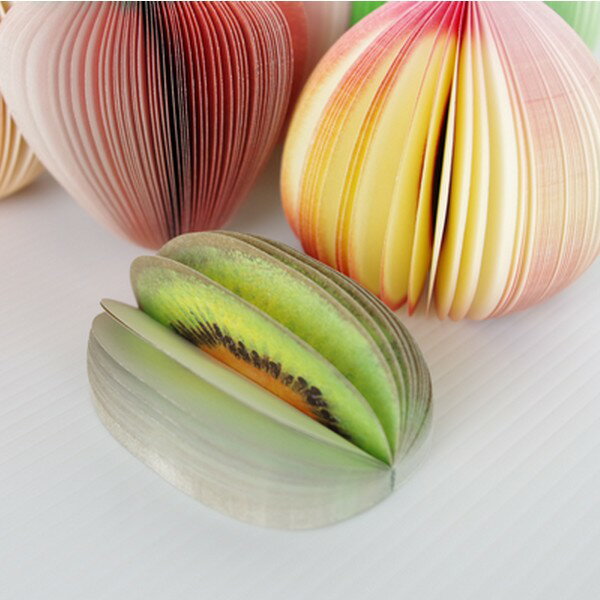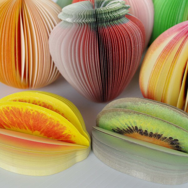 遊び心溢れる文房具も女友達への誕生日プレゼントとしておすすめ。こちらのフルーツメモは立体型に広げて机の上に置いておくことができ、半分にカットしたような形のフルーツ型メモとして使うことができます。