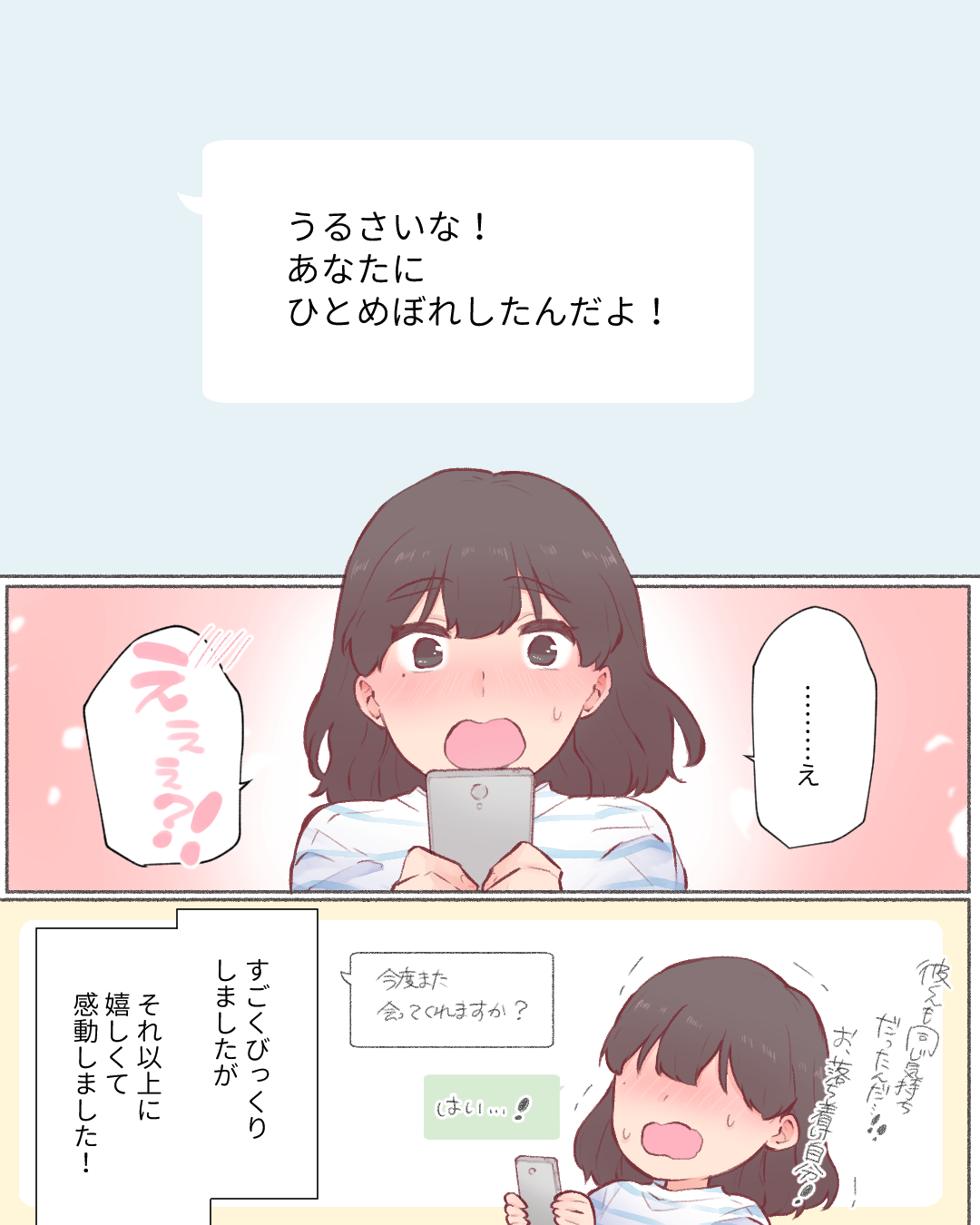 出会って最初のサプライズ【Lovely漫画】 オリジナル漫画 2024年10月2日 目次 倖さんの漫画をもっと読む! 倖さんの作品一覧【Lovely漫画】 倖さんの人気作をおまとめしています! こちらのLovely漫画もおすすめ! 好きな人が出来たことが無い彼を好きにさせた話【Lovely漫画】 私が好きになったバイト先の店長は、「好き」という気持ちが分からない人で…。でも絶対に振り向かせてみせる!©しのだちかこ/エピソード:j お揃いのホクロ【Lovely漫画】 首の後ろに大きいホクロと、左腕に象さんホクロがある私。そのことを彼に話すとなんと彼にも同じ位置にホクロが!©倖/エピソード:はるちゃん 不覚にもキュンとしてしまった話【Lovely漫画】 塾講師のアルバイトをしている私。ある日髪をバッサリ切って出勤すると…©なぁ/エピソード:匿名 年上の後輩【Lovely漫画】 中途採用で入社してきた佐々田さん。年上の後輩としか思っていなかったけれど、仕事帰りにたまたま会ったことがきっかけで急接近することに。しかしどうやら彼はモテるようで…。©あやたきくこ/エピソード:ちろ ライター Lovely編集部 編集部レポや最新情報など皆さんの「知りたい」をお届け!よろしくお願いします♡ Related article / 関連記事 オリジナル漫画 メンヘラ彼氏にサヨナラ【Lovely漫画】 ©みんみ 2022年3月29日 オリジナル漫画 年下イケメン彼氏に翻弄されるオンナの毎日#3【Lovely漫画】 ©みんみ 2022年3月29日 オリジナル漫画 2人暮らしのゆる家事日記~気まぐれ旦那の献立作りの巻き~後編【Lovely漫画】 ©みんみ 2022年3月29日 オリジナル漫画 年下イケメン彼氏に翻弄されるオンナの毎日#1【Lovely漫画】 ©みんみ「初めての○○の話 前編」 2022年3月29日 オリジナル漫画 年下イケメン彼氏に翻弄されるオンナの毎日#2【Lovely漫画】 ©みんみ「初めての○○の話 後編」 2022年3月29日 1 2 オリジナル漫画 よかったらシェアしてね! URLをコピーしました! URLをコピーしました! ヤベェ同期に困ってます!!20【稲漫画】 髪の結び方の名前の種類・アレンジまとめ!【簡単で可愛い】