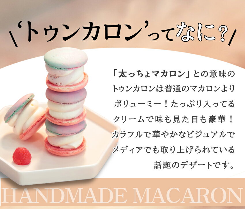 ママ友へのプレゼントと言えば、カラフルで可愛いマカロンが定番!こちらのマカロンは普通のマカロンよりもクリームがたっぷり入っている、太っちょマカロンなんです。