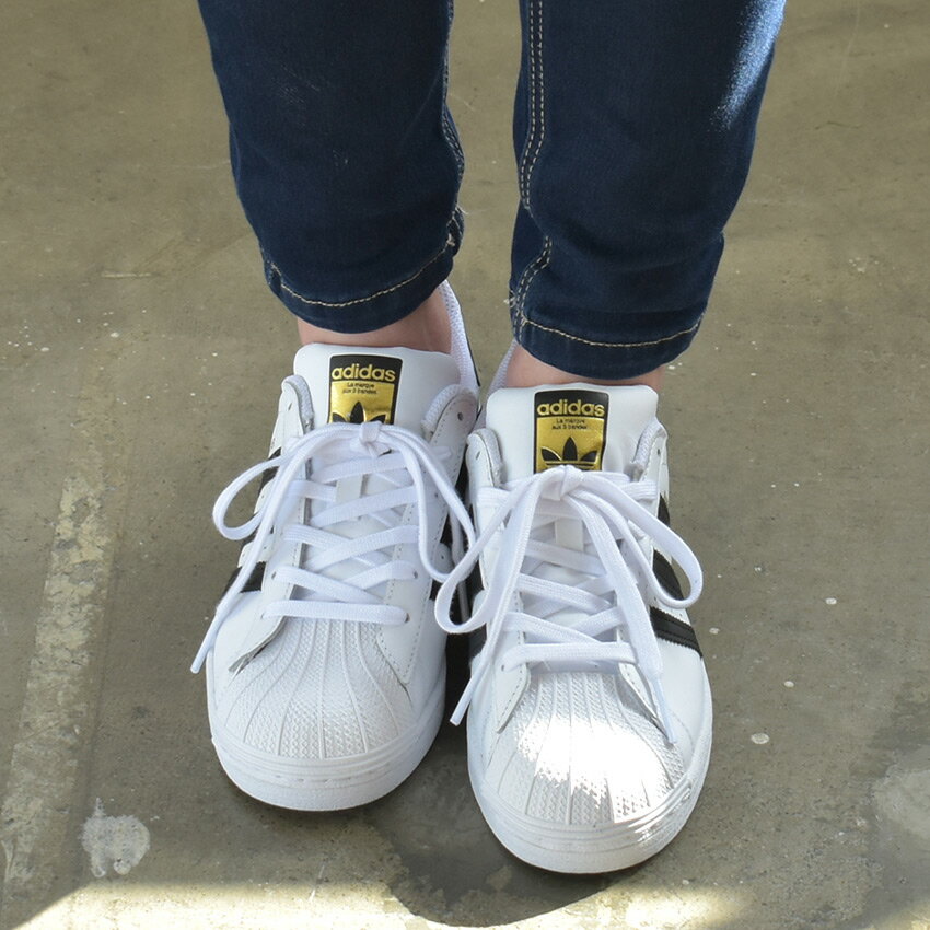 同じく定番のスニーカーとも言えるのがアディダスのスーパースターJです。サイドには3本のラインが入っているのがアディダスのスニーカーの特徴で、ころんとしていて見た目もシンプル。