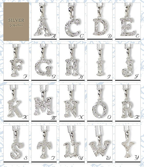ハワイアンジュエリーをイメージしたイニシャルネックレスは、お守りとして身に着けるアクセサリーとして人気を集めています。それぞれのイニシャルを選びましょう。