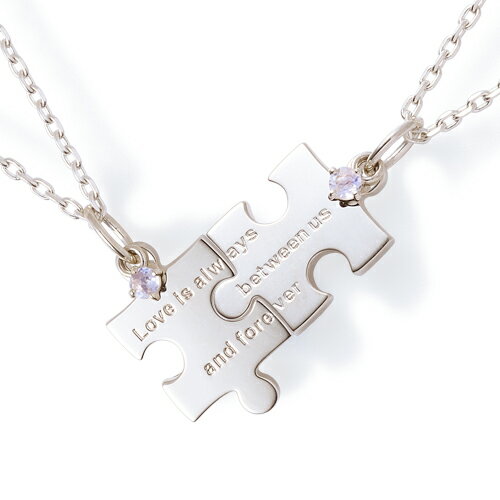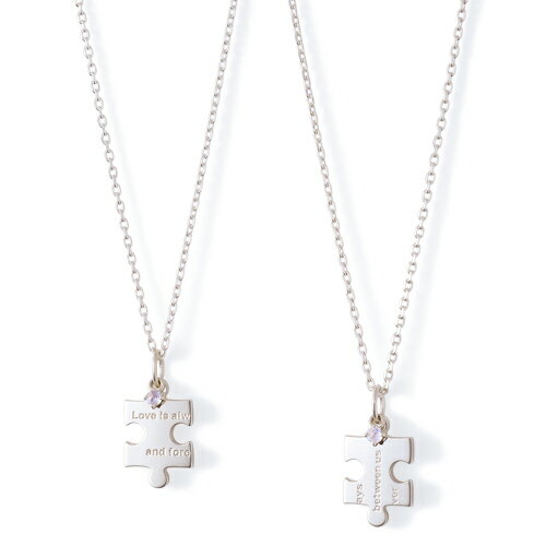 パズル型のペアネックレスは、ぴったりとつなぎ合わせられるのが嬉しいポイント。二人の絆を再確認するのに最適なペアネックレスです。