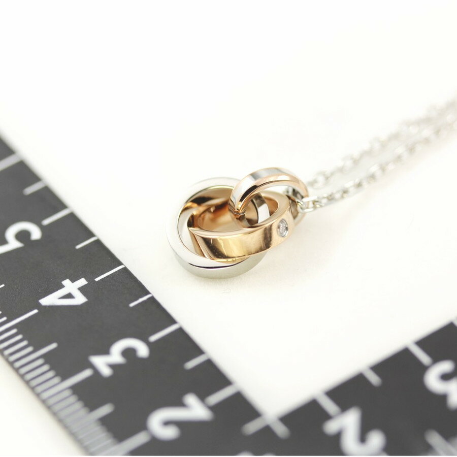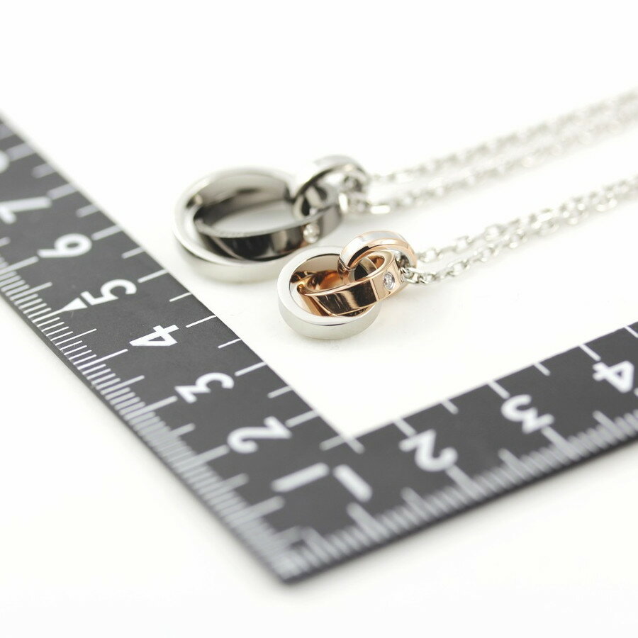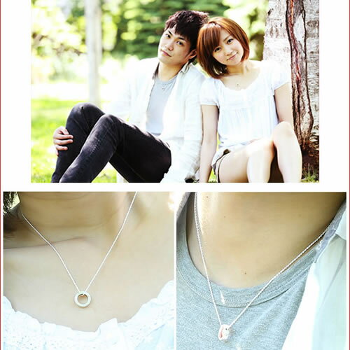 リング型のペアネックレスは、飽きがこないシンプルなデザインが魅力です。長さが調整できるアジャスターが付いており、ぴったりのサイズにできます。