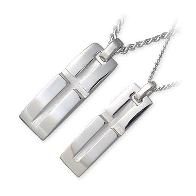 プレートにクロスが入ったペアネックレスは、「派手なネックレスは苦手」と感じているカップルにおすすめ。落ち着いたデザインだからこそ、幅広いシーンで身に着けられます。