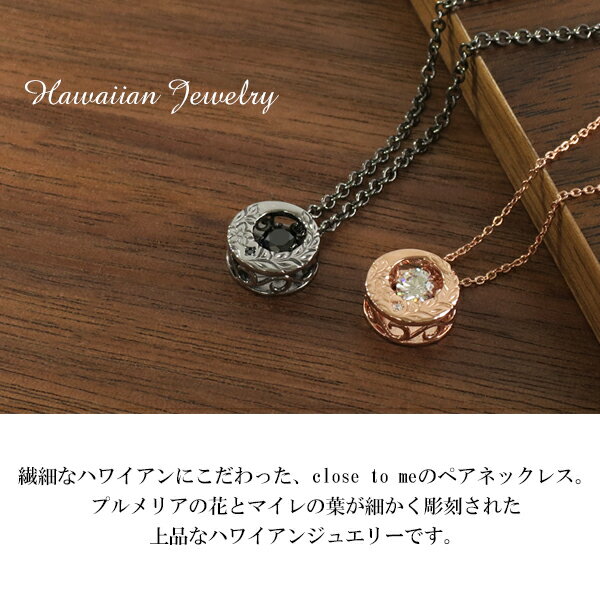 繊細なハワイアンデザインにこだわったアクセサリーに定評のあるブランドです。ペアネックレスには、プルメリアの花とマイレの葉といったハワイモチーフを入れているのが特徴となります。
