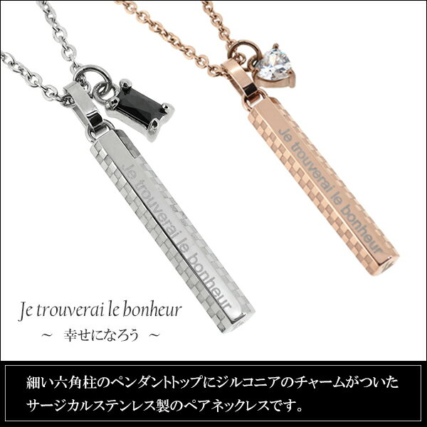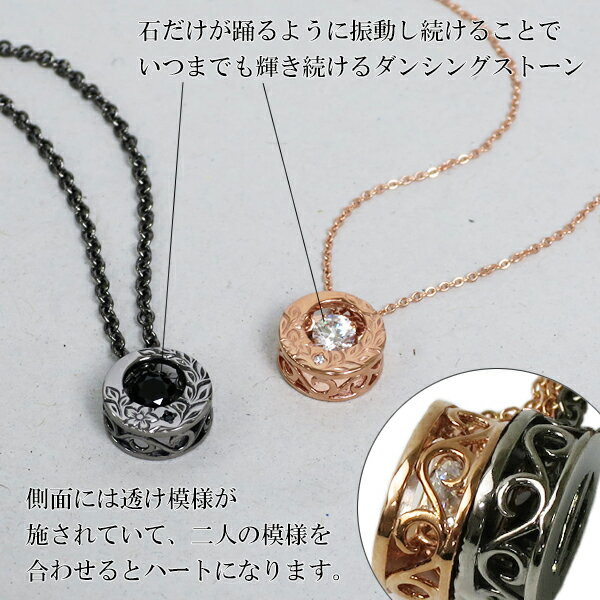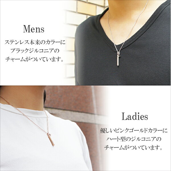 メンズはシルバーステンレスにブラックジルコニア、レディースはピンクゴールドにハート型のジルコニアが入っています。それぞれに個性がありながらも、シンプルな雰囲気が魅力です。