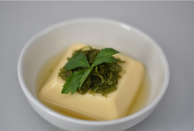 夕食の一品に冷ややっこをプラスするのも効果的です。タンパク質を豊富に含む卵豆腐にめかぶをかけるだけでさっぱり美味しい簡単メニューに早変わりします。