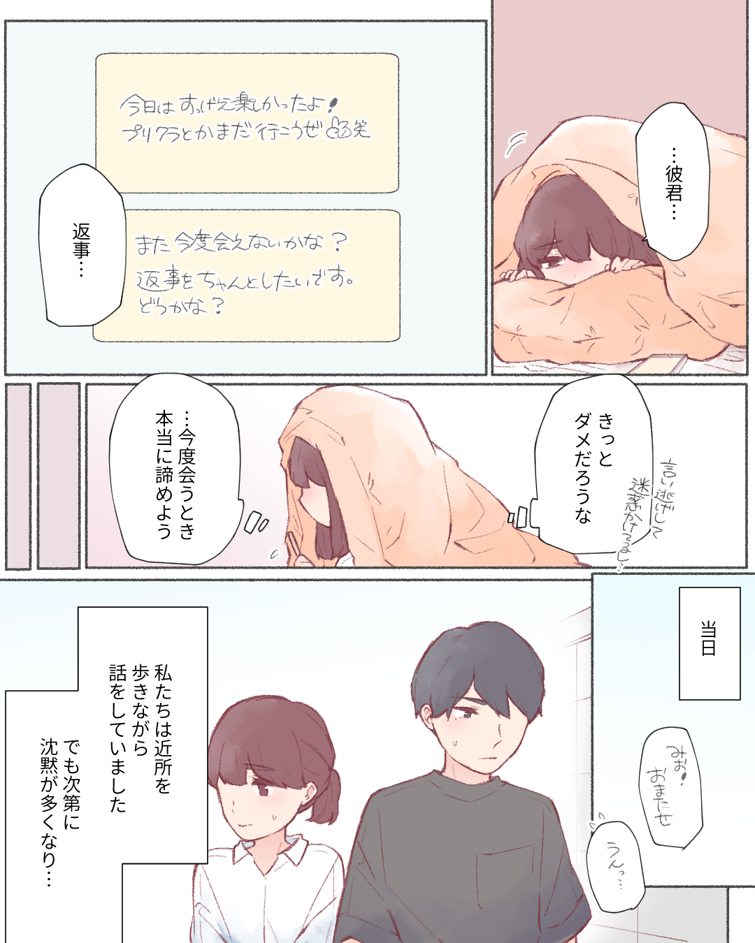 2年後に【Lovely漫画】 オリジナル漫画 2025年2月5日 目次 倖さんの作品をもっと読む! 倖さんの作品一覧【Lovely漫画】 倖さんの人気作をおまとめしています! こちらのLovely漫画もおすすめ! 大好きな彼と復縁した話【Lovely漫画】 恋愛相談をしているうちにお互いに惹かれあい付き合うことに。幸せな毎日を過ごす中、突然振られてしまい…©どんぐり/エピソード:お子ちゃま もう一度あなたと付き合いたい…!【Lovely漫画】 彼から別れを告げられた日は大雨だった。まるで私の心の中みたいだった。でも、彼のことを諦められなくて…。©はる/エピソード:匿名 3年越しの復縁【Lovely漫画】 中2の時に初めてできた彼。なんと告白されてすぐに振られてしまった。その理由は…©倖/エピソード:まろん 2年前の彼【Lovely漫画】 夢にまで見てしまう元カレとの思い出。忘れられない毎日を過ごしていたら、突然連絡が届いた…。©しのだちかこ/エピソード:みのり ライター Lovely編集部 編集部レポや最新情報など皆さんの「知りたい」をお届け!よろしくお願いします♡ Related article / 関連記事 オリジナル漫画 メンヘラ彼氏にサヨナラ【Lovely漫画】 ©みんみ 2022年3月29日 オリジナル漫画 年下イケメン彼氏に翻弄されるオンナの毎日#3【Lovely漫画】 ©みんみ 2022年3月29日 オリジナル漫画 2人暮らしのゆる家事日記~気まぐれ旦那の献立作りの巻き~後編【Lovely漫画】 ©みんみ 2022年3月29日 オリジナル漫画 年下イケメン彼氏に翻弄されるオンナの毎日#1【Lovely漫画】 ©みんみ「初めての○○の話 前編」 2022年3月29日 オリジナル漫画 年下イケメン彼氏に翻弄されるオンナの毎日#2【Lovely漫画】 ©みんみ「初めての○○の話 後編」 2022年3月29日 1 2 3 オリジナル漫画 よかったらシェアしてね! URLをコピーしました! URLをコピーしました! 思いがけないサプライズ【Lovely漫画】 Ponyのメイク術解説!韓国の美人すぎるメイクアップアーティスト!
